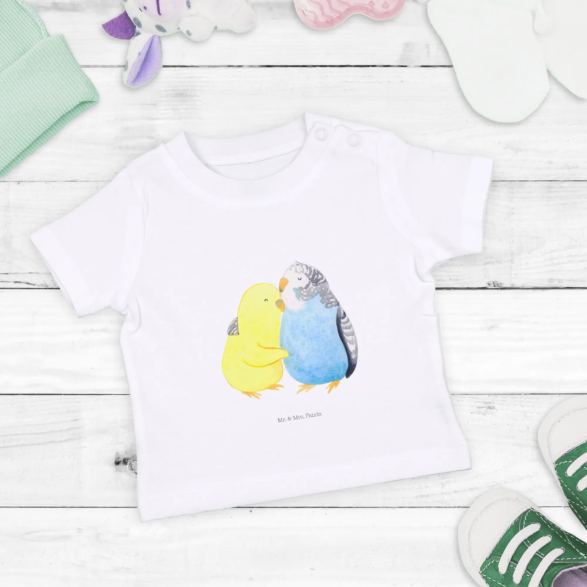 Get ready to spread some love with the Organic Baby Shirt featuring Adorable Parakeets in Love, a perfect addition to your little one's wardrobe! This charming piece from the Mr. & Mrs. Panda "Love" collection highlights a heartwarming scene where two cute budgies are nestled closely together, embodying trust, closeness, and cuddling. The delicate design, with soft pastel shades and hand-painted watercolor effects, will not only keep your baby comfy but also capture the hearts of everyone who sees it.