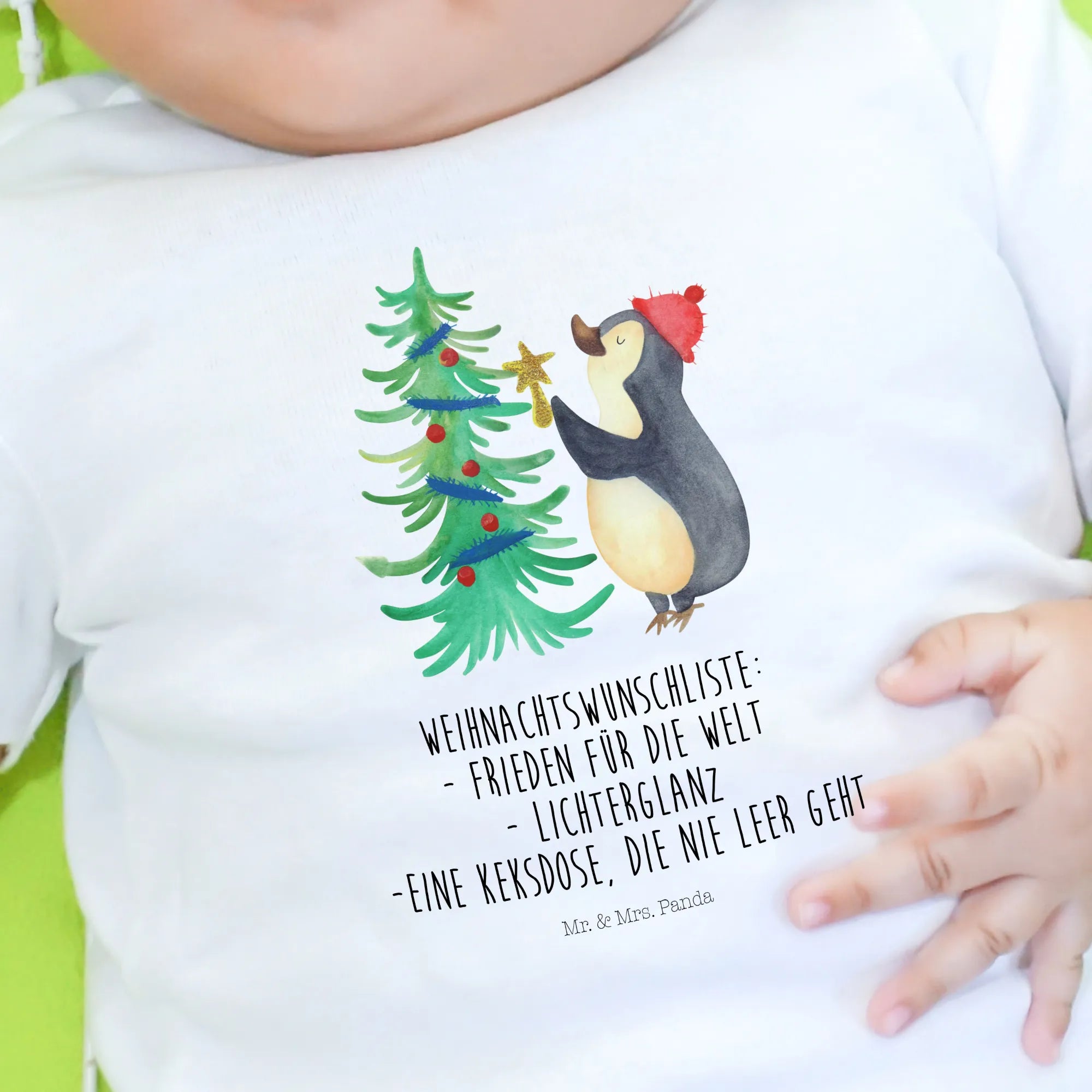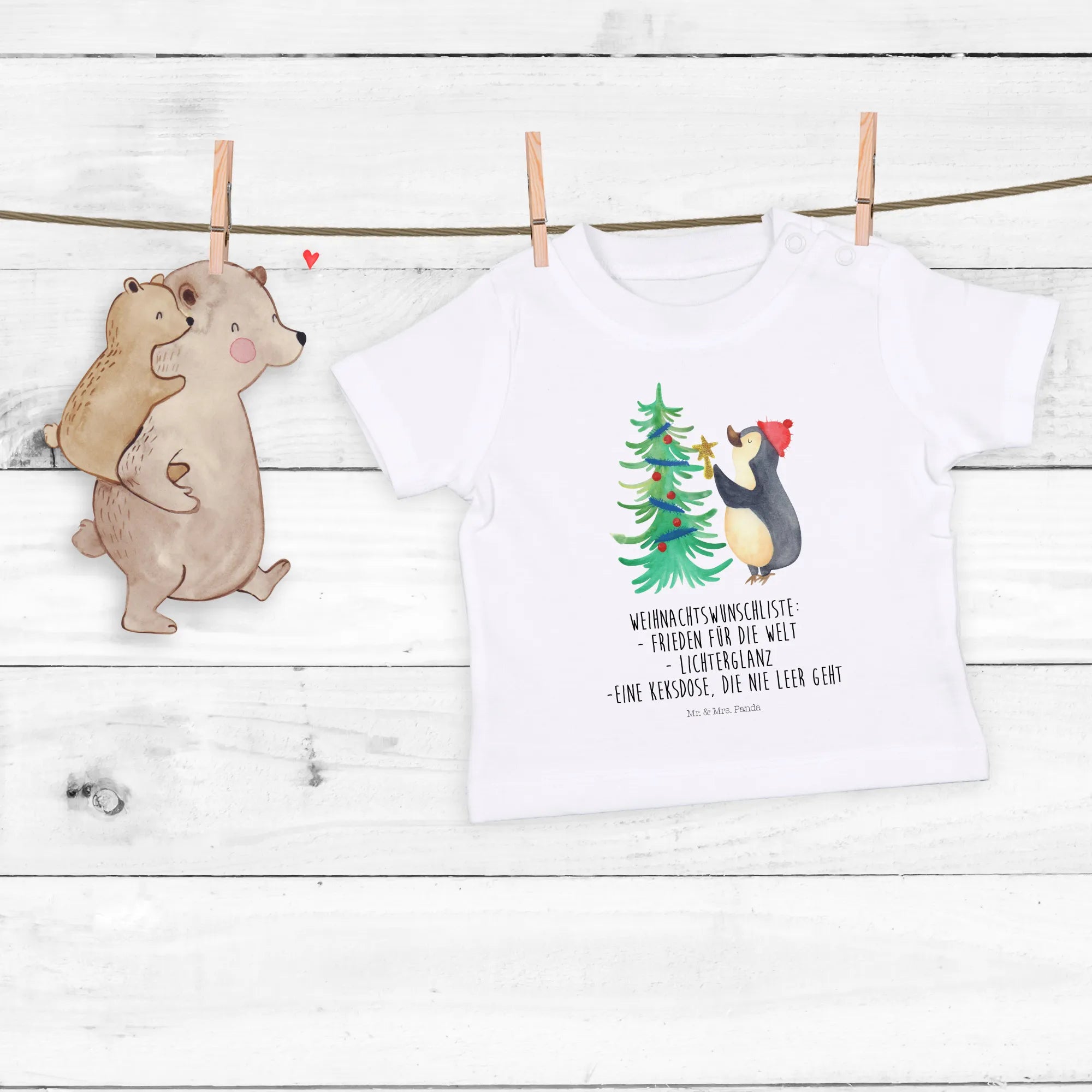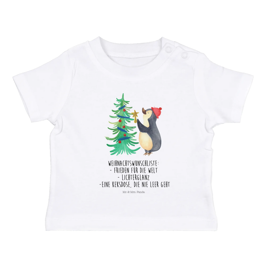 Organic Baby Shirt penguin Christmas tree - 6. - 12. Monat - with saying