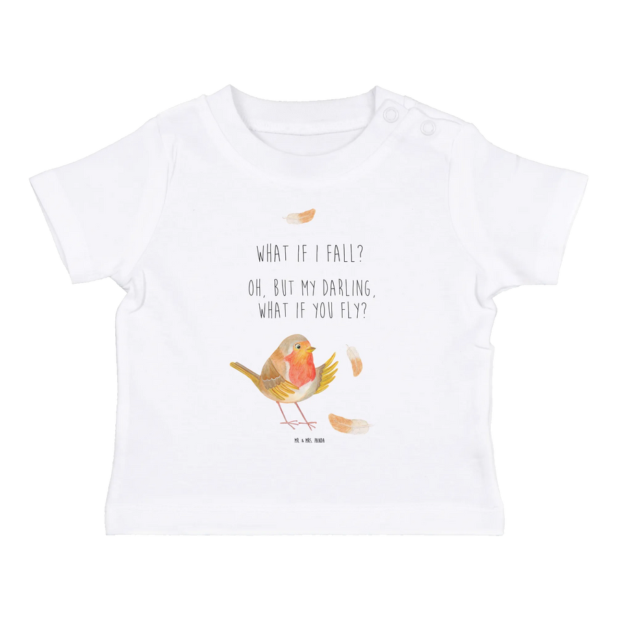Organic Baby Shirt robin feathers - 0. - 6. Monat - with saying - White