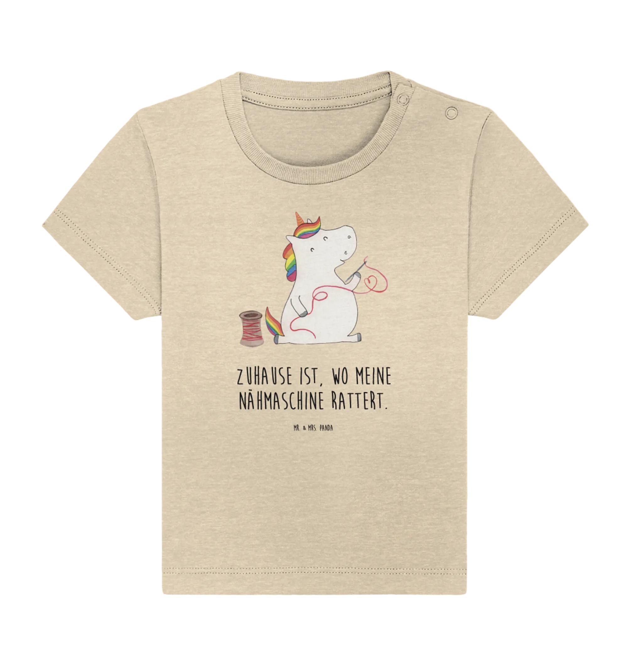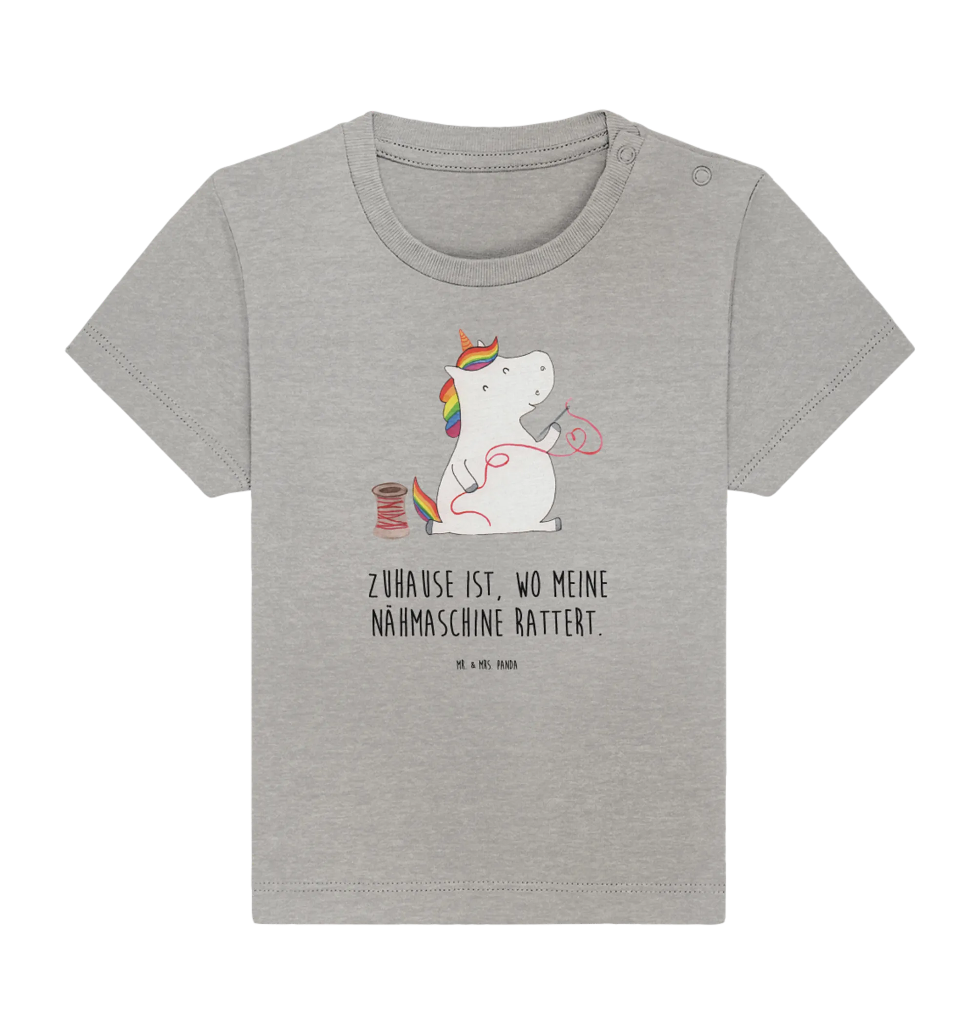Entdecke die gesamte Einhorn-Kollektion von Mr. & Mrs. Panda, die voller magischer Designs und bezaubernder Sprüche steckt! So wird das Schenken und Tragen von Babysachen zu einem besonderen Erlebnis für alle. Schenke Freude mit einem Stück Einhorn-Magie – dieses Shirt wird sicherlich in jedem Nähzimmer und unter jeder Nähmaschine ein Lächeln zaubern!