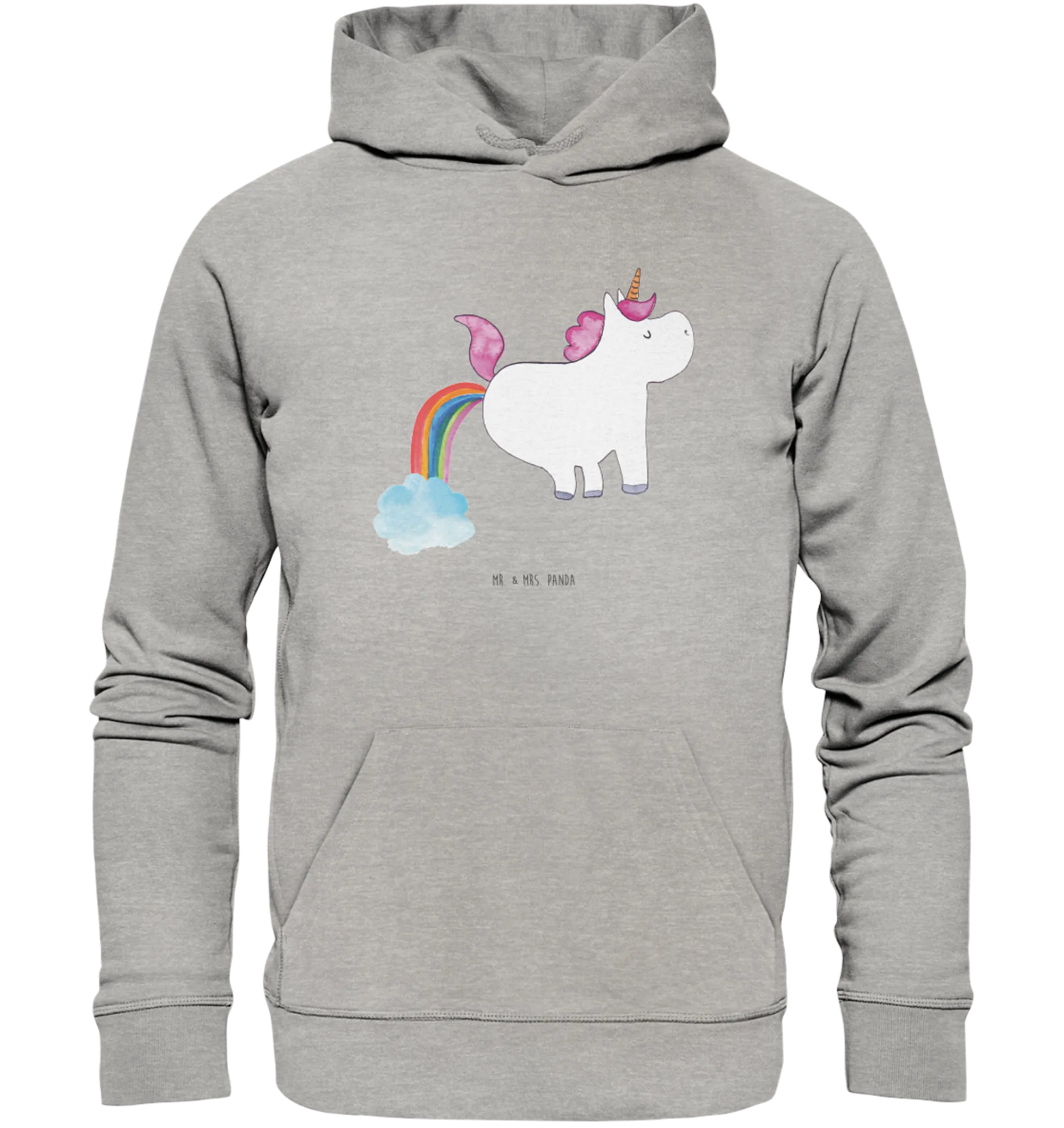 The organic hoodie can be easily machine washed at 30 degrees, turning it into a low-maintenance choice for your wardrobe. Just remember to wash it inside out to keep that enchanting design looking fresh. Embrace the magic of unicorns and show off your vibrant personality with the Mr. & Mrs. Panda Organic Hoodie featuring "Unicorn Fart" – a truly one-of-a-kind gift for anyone who believes in a little sparkle and laughter!