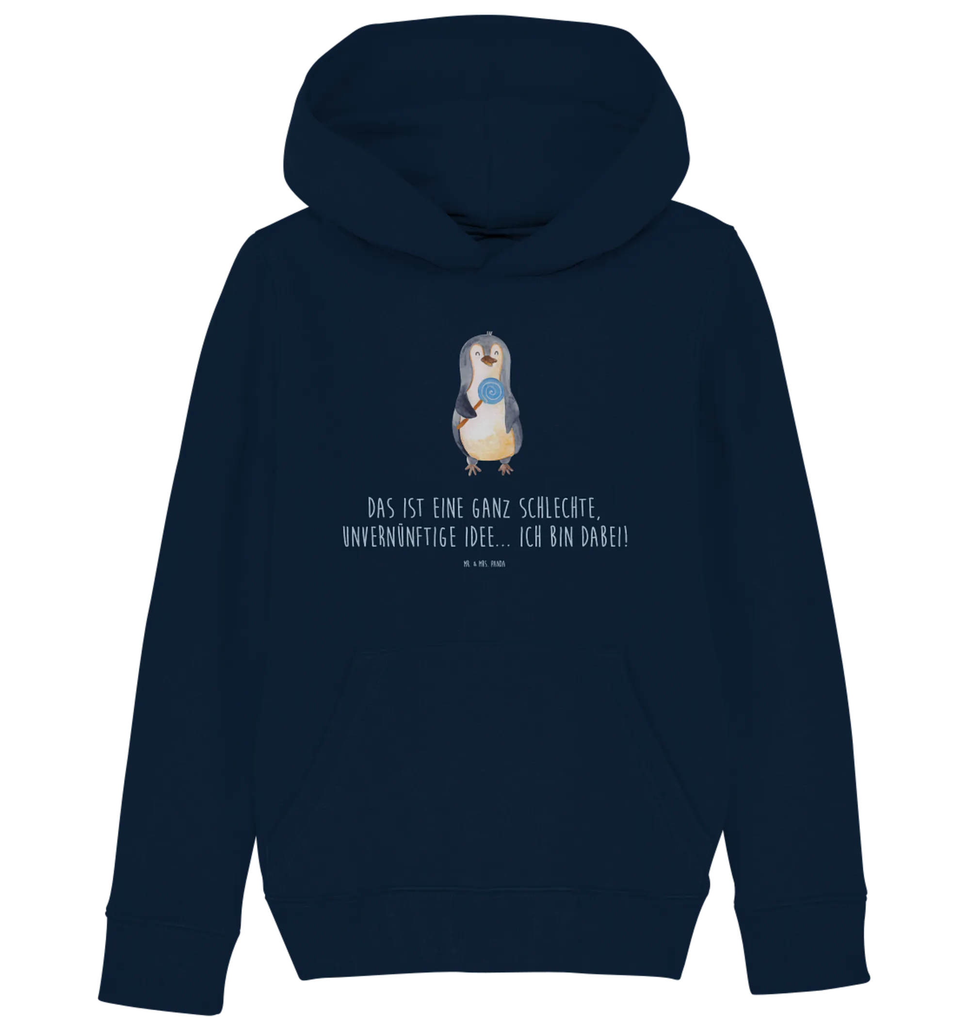 Organic Kids Hoodie Penguin lollipop - 12-14 years (152/164) - with a saying - French Navy