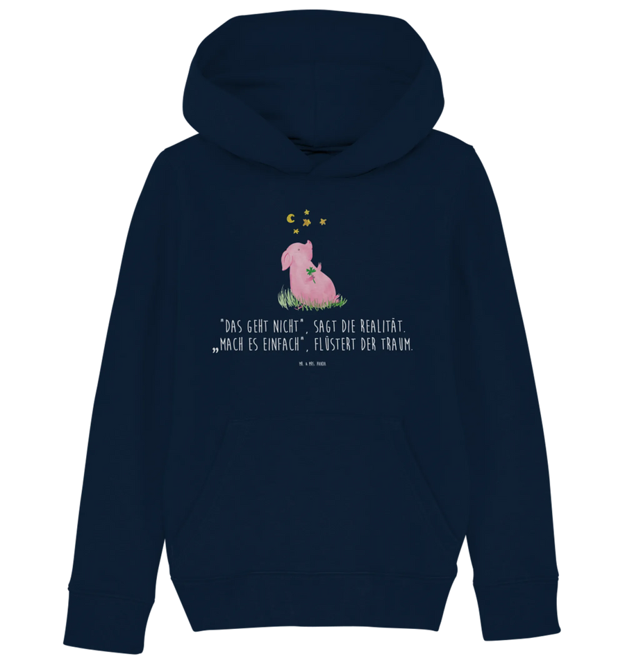 Organic Kids Hoodie Pig Luck - 12-14 Jahre (152/164) - with saying - French Navy