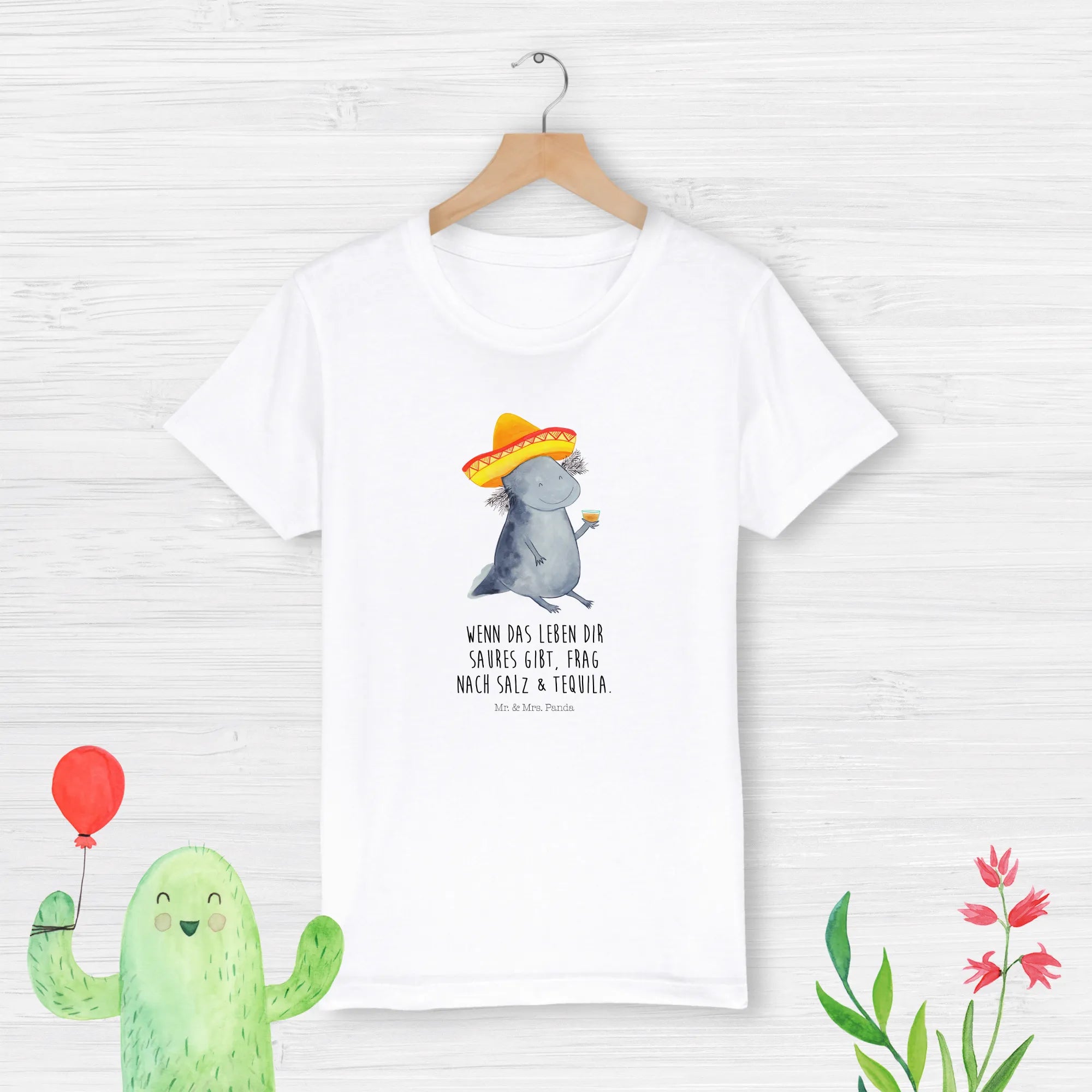 Are you on the lookout for a delightful gift for that special child who adores marine life? Look no further than our charming Organic Kids T-Shirt featuring the Axolotl Tequila motif from the beloved Axolotl collection by Mr. & Mrs. Panda!
