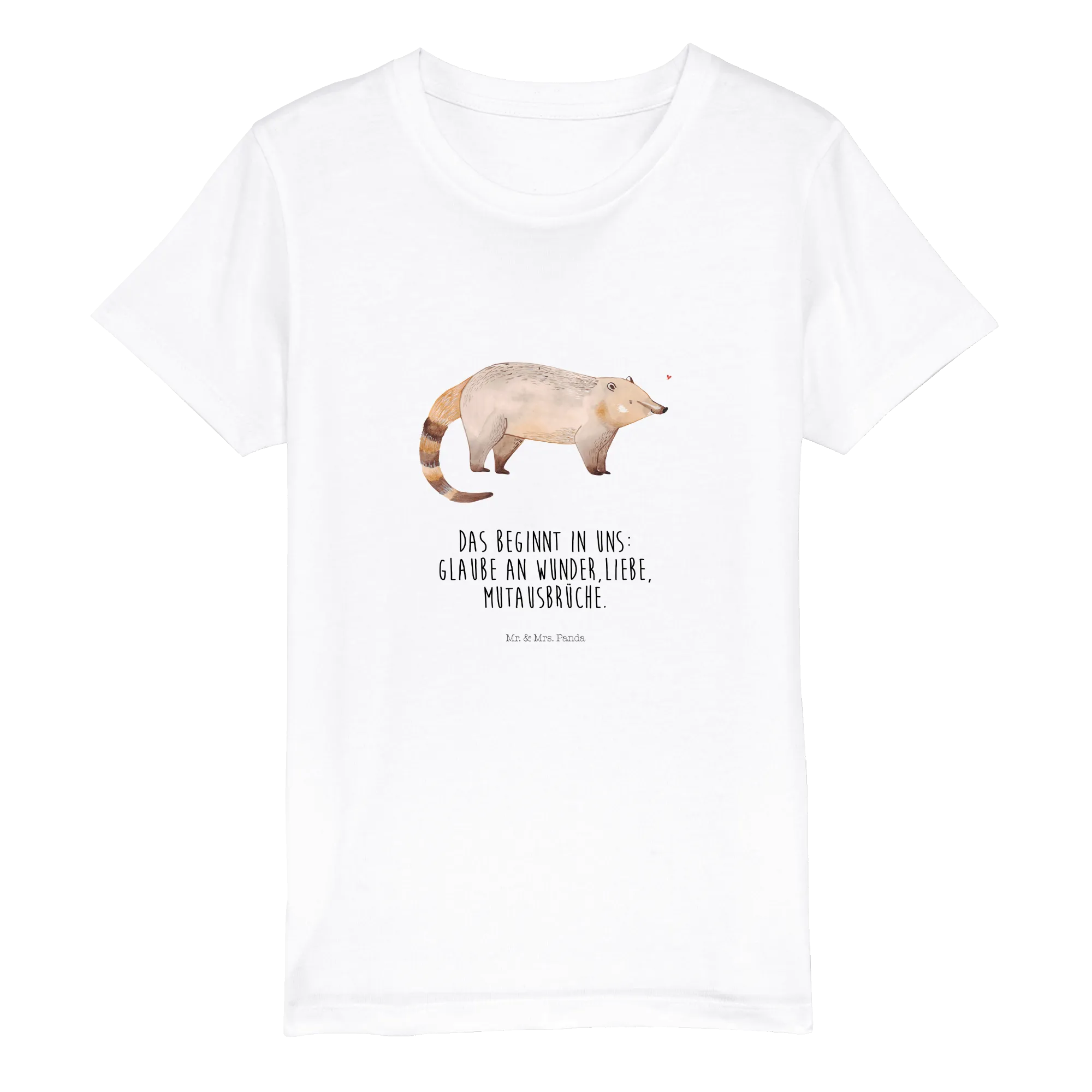 Join the movement of spreading joy and kindness through fashion with Mr. & Mrs. Panda. Let every little one believe in the wonders of their imagination while wearing this cuddly Coati shirt, and watch them share the love with everyone around them!