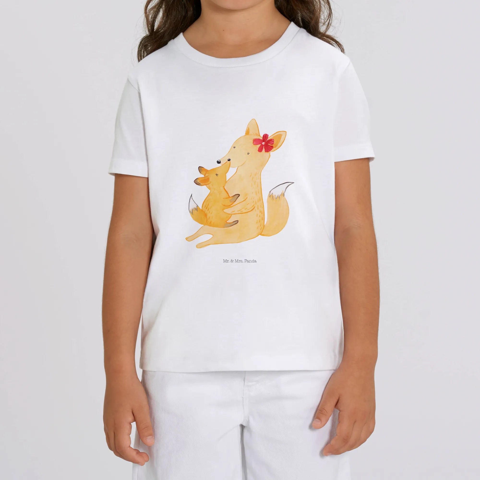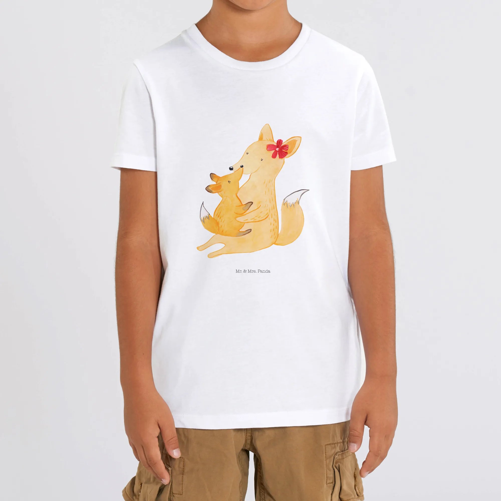 Looking for the perfect gift that captures the warmth and love of family? Look no further than our charming Organic Kids T-Shirt featuring the adorable Mom & kid foxes design from the Family collection by Mr. & Mrs. Panda!