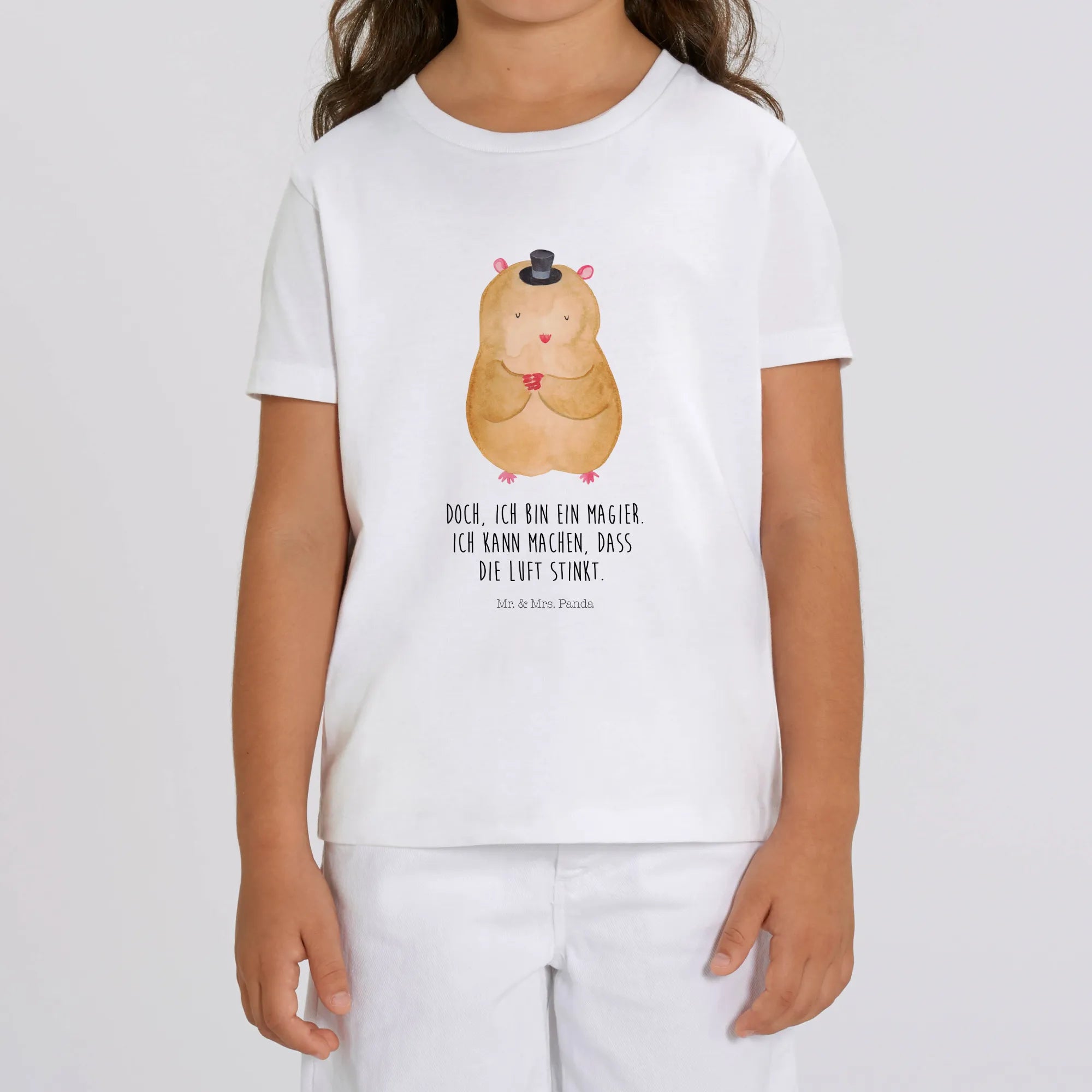 Mr. & Mrs. Panda präsentiert: Das Organic Kinder T-Shirt „Hamster mit Hut“ aus der Small World Kollektion – ein liebenswertes Kindershirt mit frechem Spruch und einem zuckersüßen Motiv. Der kleine Zwerghamster mit Zylinder faltet unschuldig die Händchen und sorgt mit dem Spruch „Doch, ich bin ein Magier. Ich kann machen, dass die Luft stinkt.“ für jede Menge Lacher. 🐹🎩