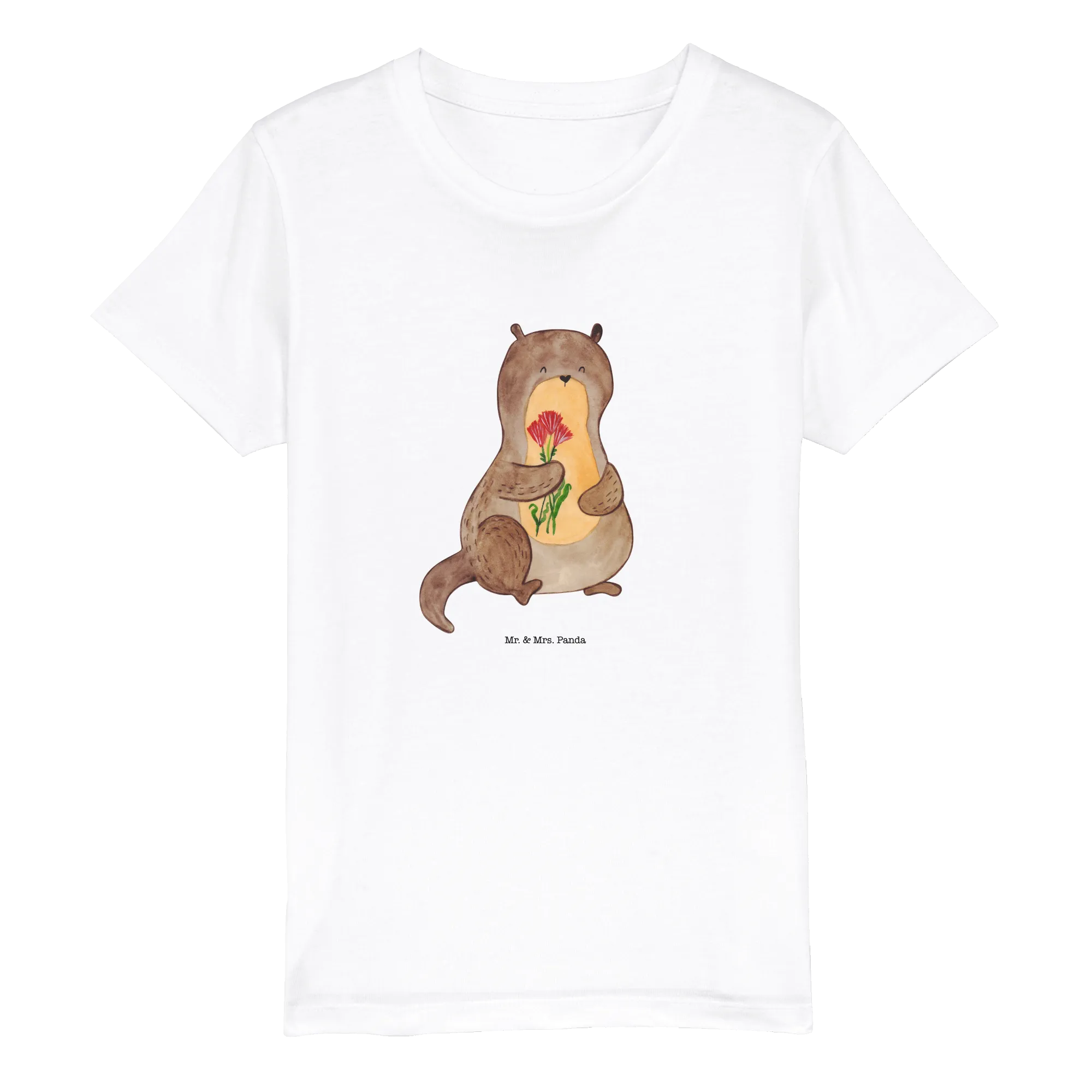Introducing the adorable Organic Kids T-Shirt featuring a charming otter design with flowers from the delightful Otter Collection by Mr. & Mrs. Panda! This enchanting t-shirt is perfect for both boys and girls aged 3-14, making it an invaluable addition to any little one's wardrobe.