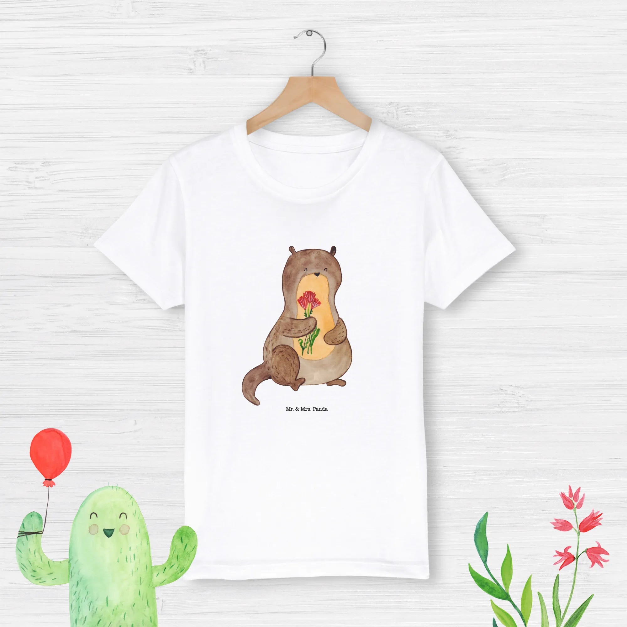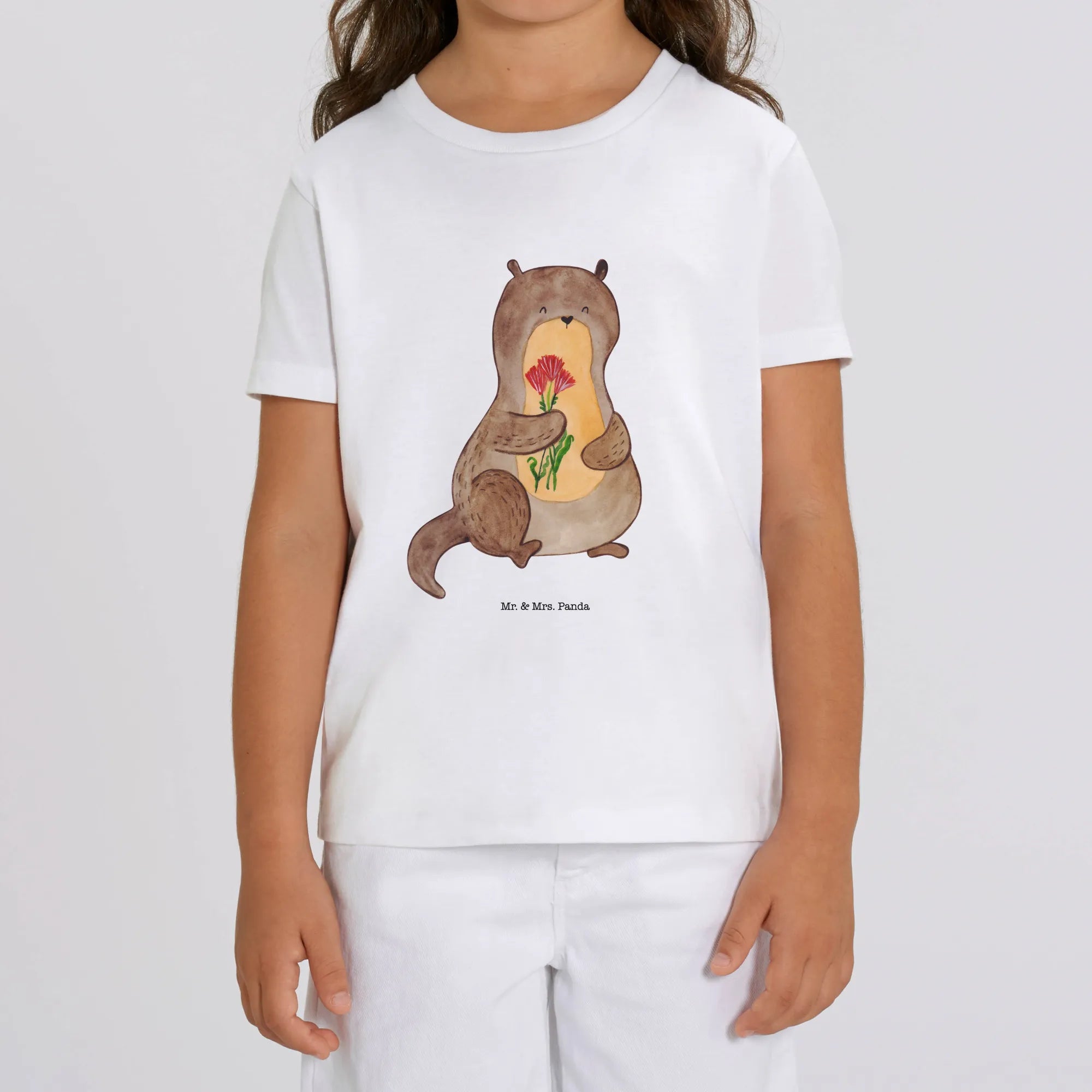 Introducing the adorable Organic Kids T-Shirt featuring the delightful otter with flowers design from the beloved Otter Collection by Mr. & Mrs. Panda! This charming t-shirt is perfect for little ones who love animals, especially otters! Made from 100% organic cotton, this t-shirt is not only soft and comfortable but also kind to the planet.