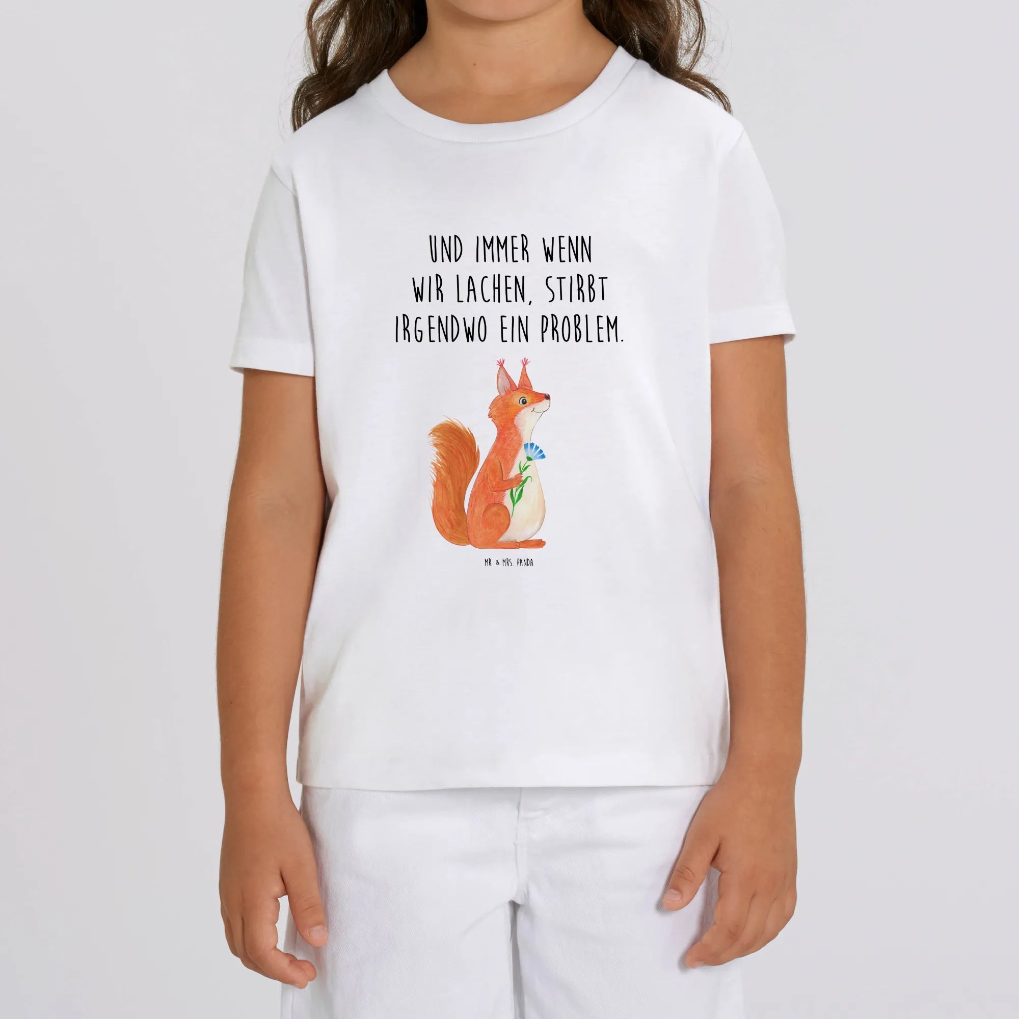 Organic Kids T-Shirt Squirrel flower - 3-4 Jahre (98/104) - with saying - White