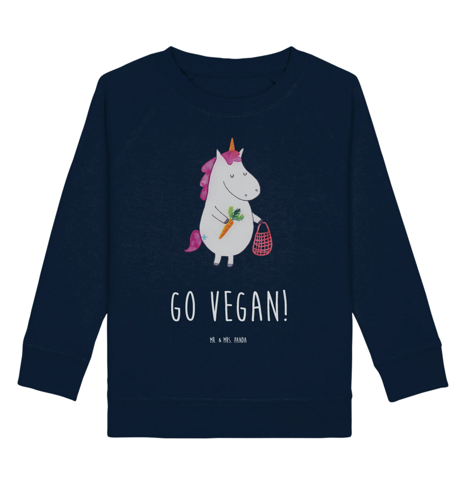 Der Organic Kinder Pullover Einhorn Vegan von Mr. & Mrs. Panda ist das perfekte Geschenk für kleine Einhornfans, die gesund leben und leckere vegane Snacks lieben! Mit einem niedlichen Motiv eines Einhorns, das mit seiner Einkaufstasche vegane Lebensmittel kauft, zieht dieser Pullover die Aufmerksamkeit auf sich und sendet gleichzeitig eine wichtige Botschaft: 'GO VEGAN!'.
