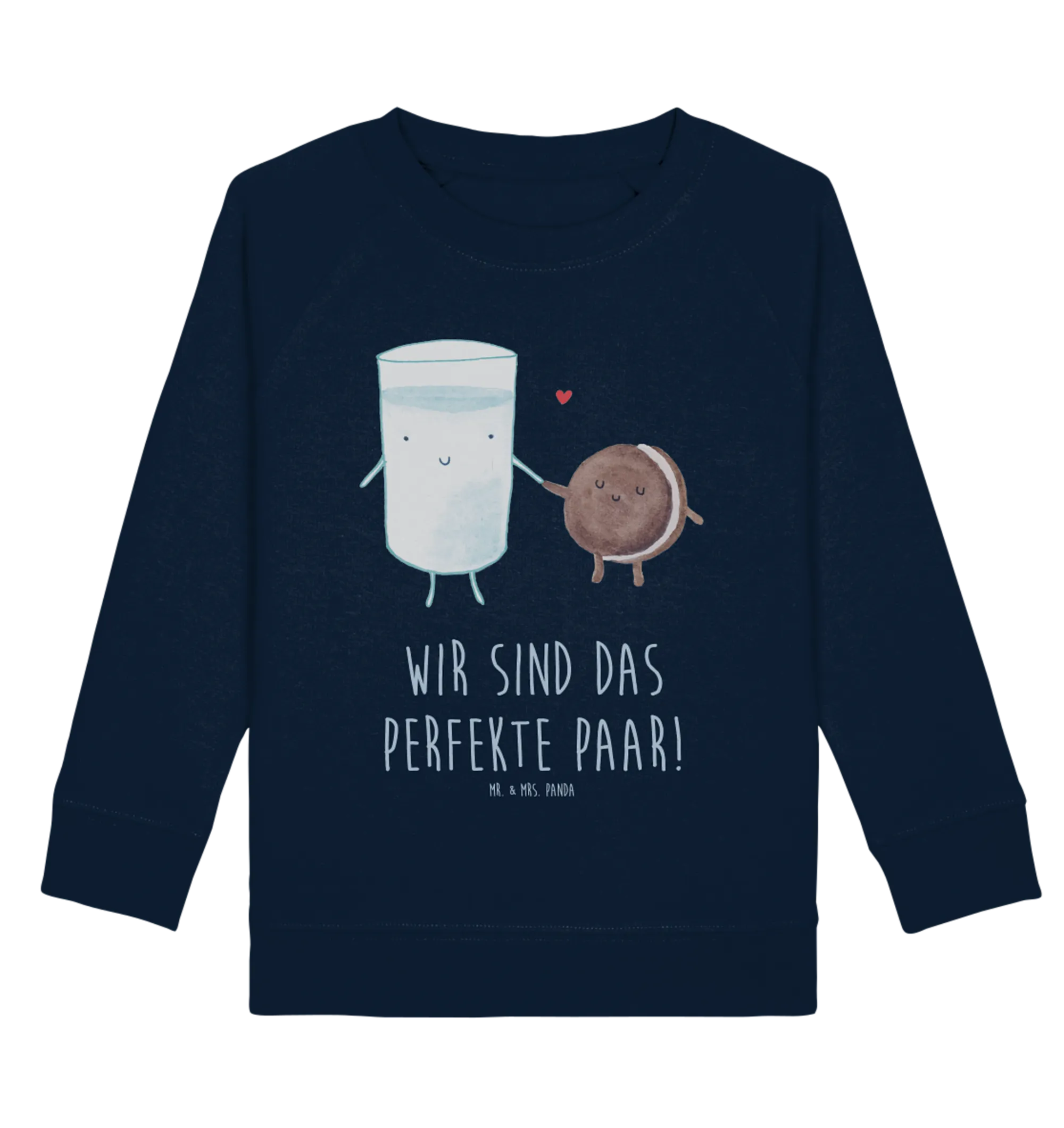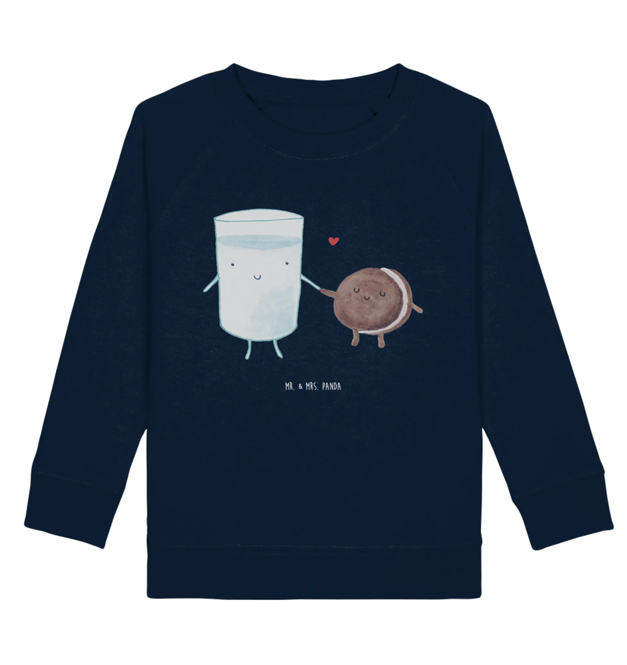 Der Organic Kinder Pullover mit dem süßen Motiv "Milch & Keks" von Mr. & Mrs. Panda ist die perfekte Wahl für all die kleinen Naschkatzen und Tierfreunde!