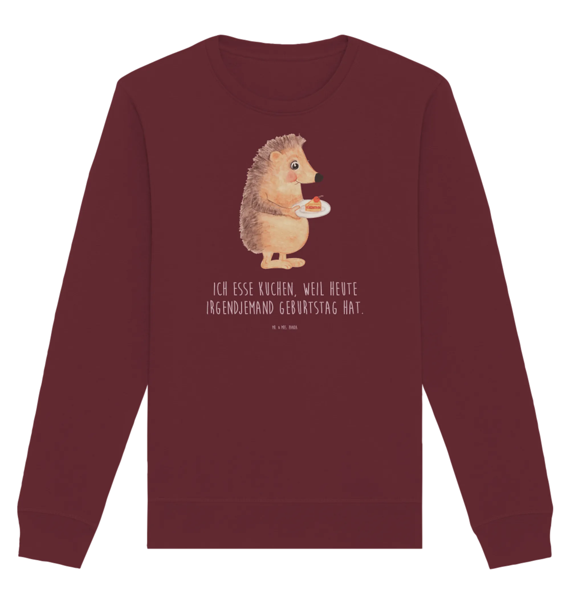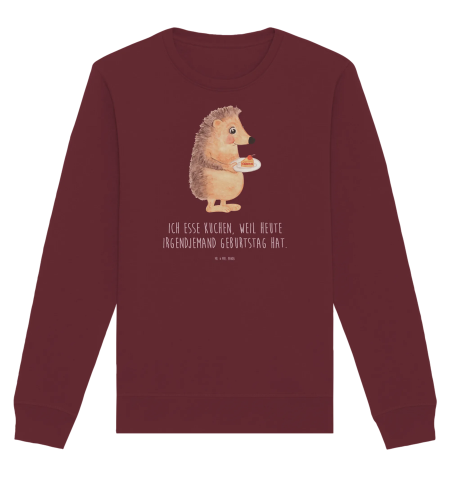 Organic Pullover Hedgehog piece of cake - Size XXL - with a saying - Burgundy
