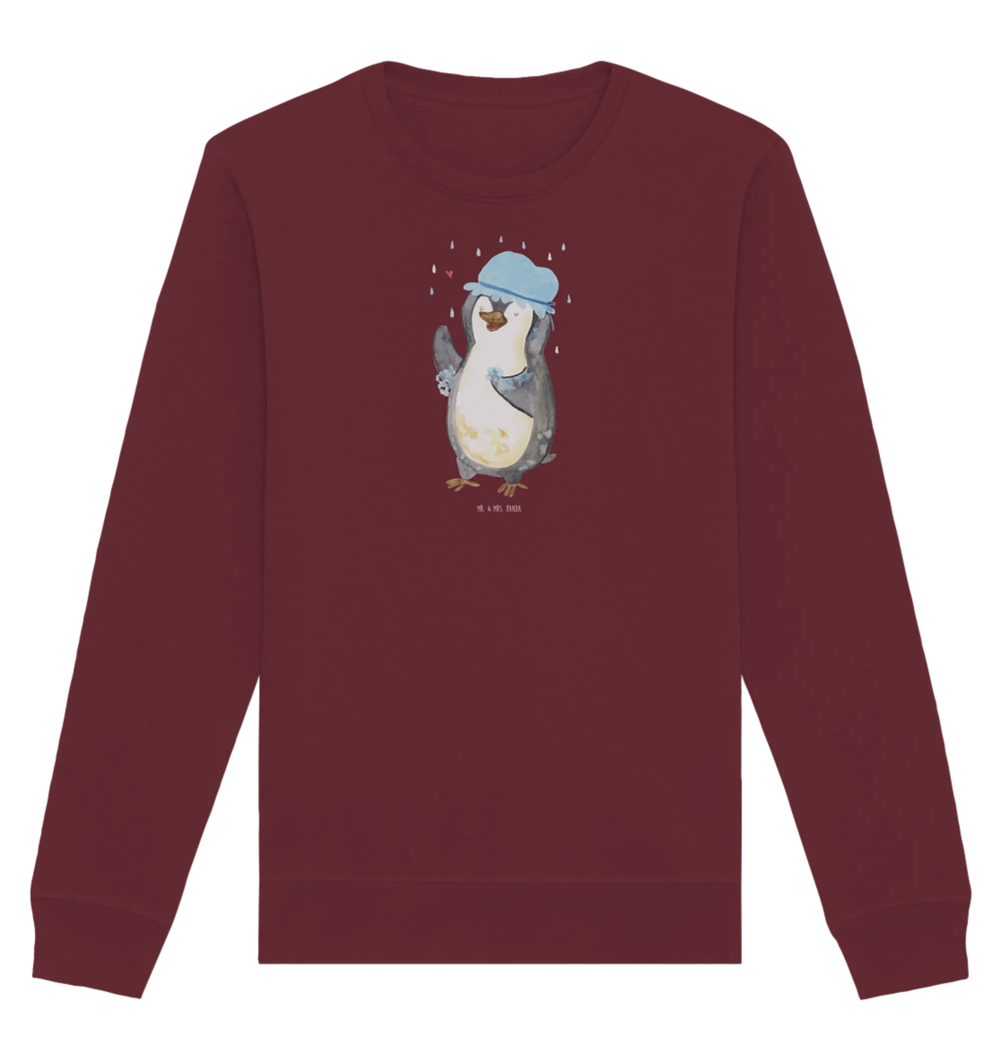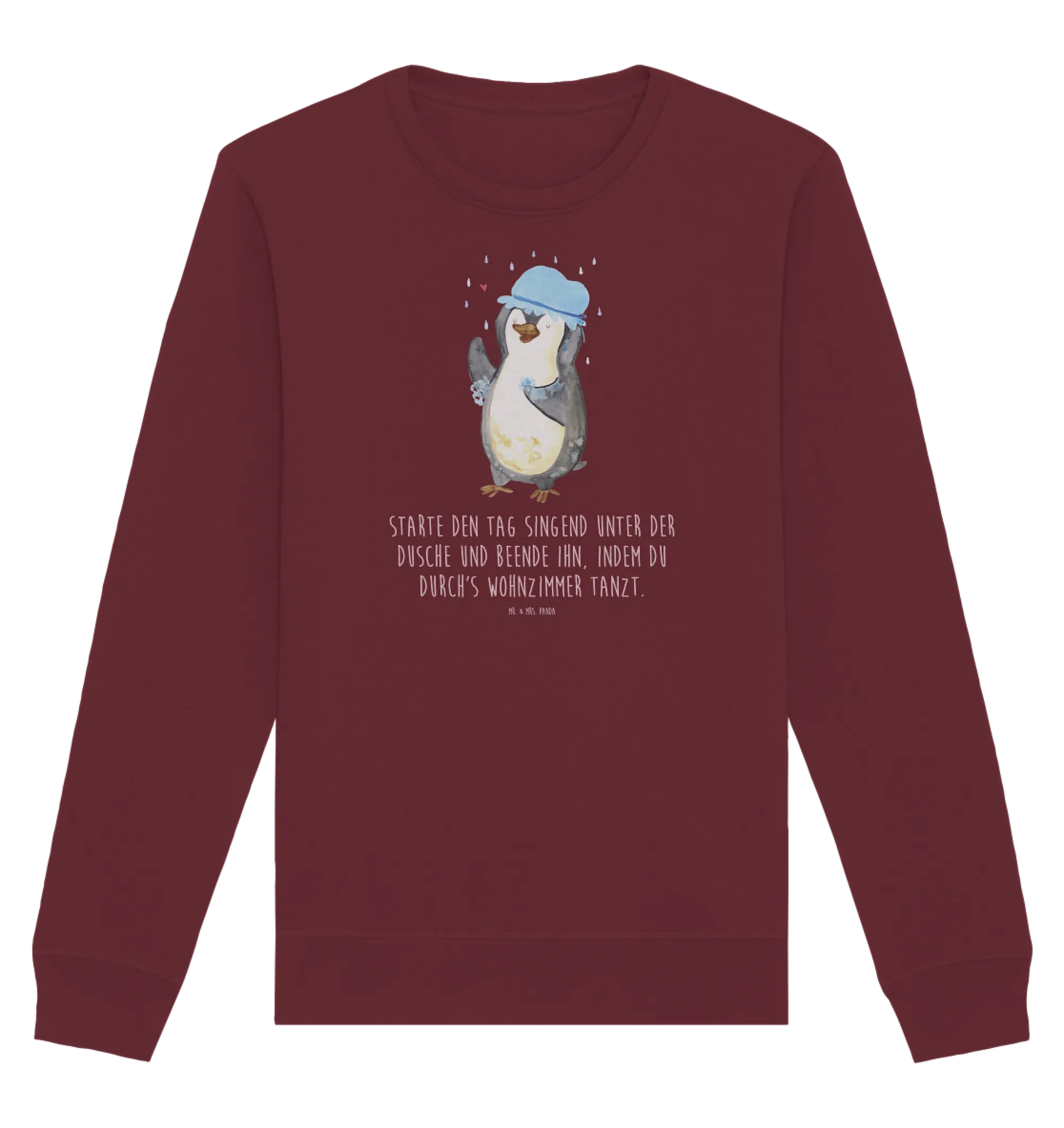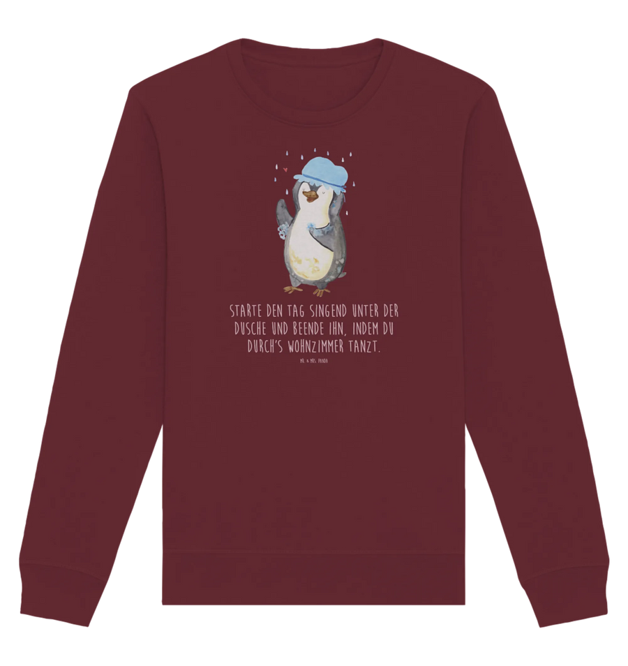 Organic Pullover Penguin have a shower - Size XXL - with saying - Burgundy
