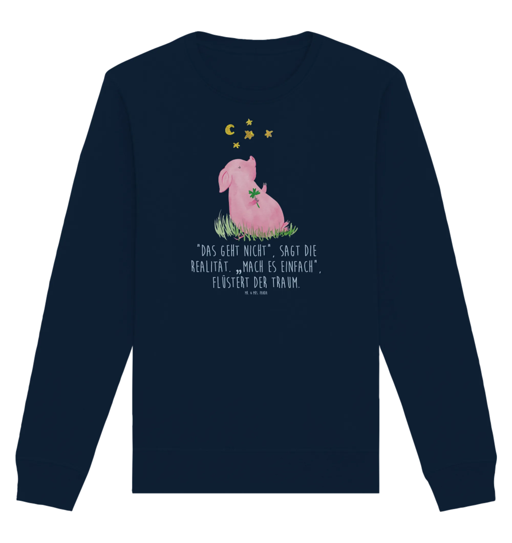 Organic Pullover Pig Luck - Größe XXL - with saying - French Navy