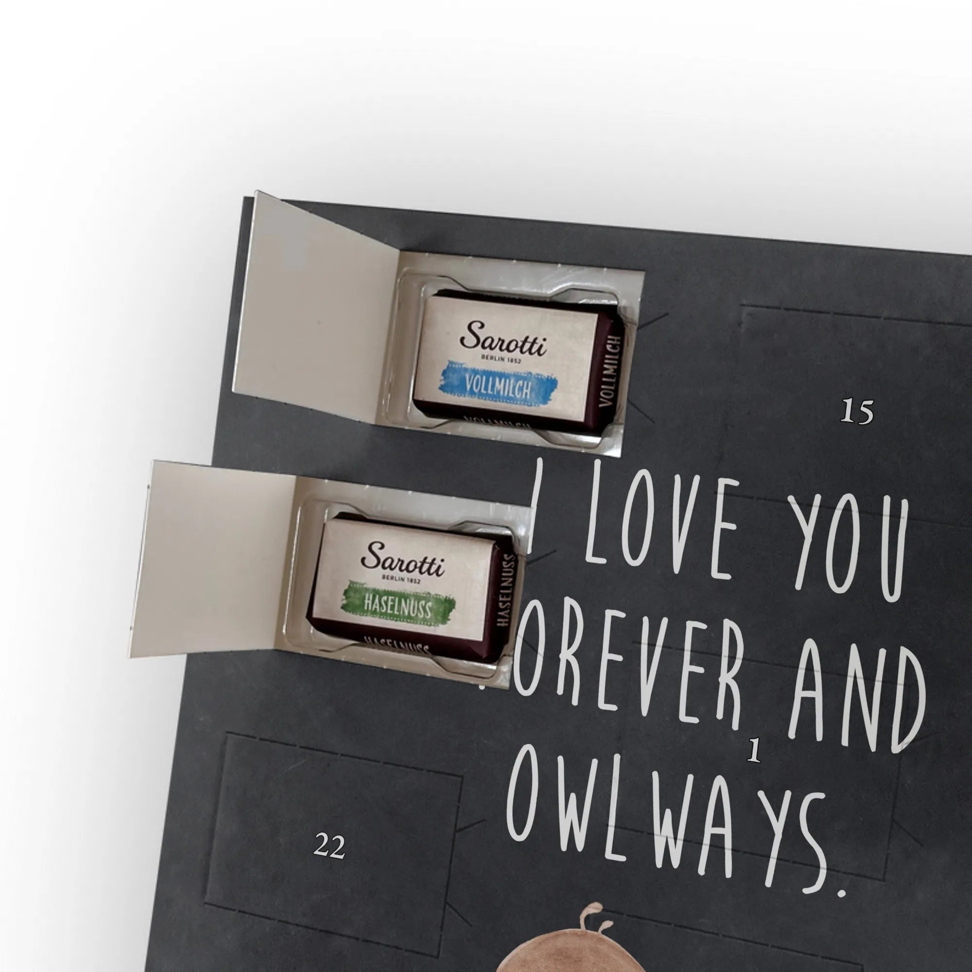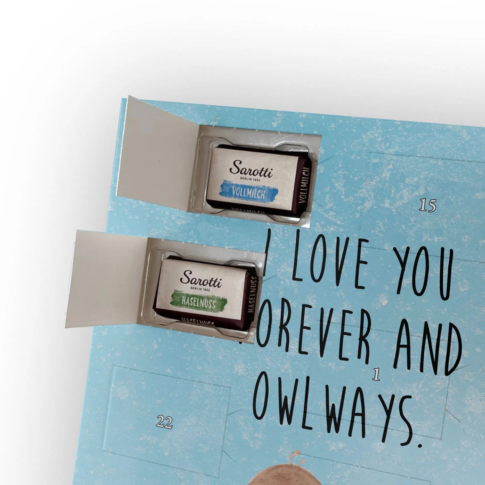 🐼 PERSONALISIERTER SCHOKO KALENDER: Aufhängbar oder aufstellbar, seidenmatt, bedruckt.