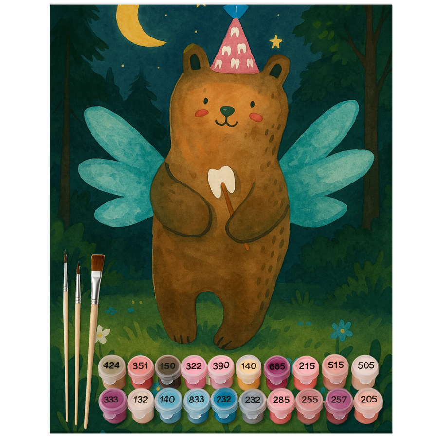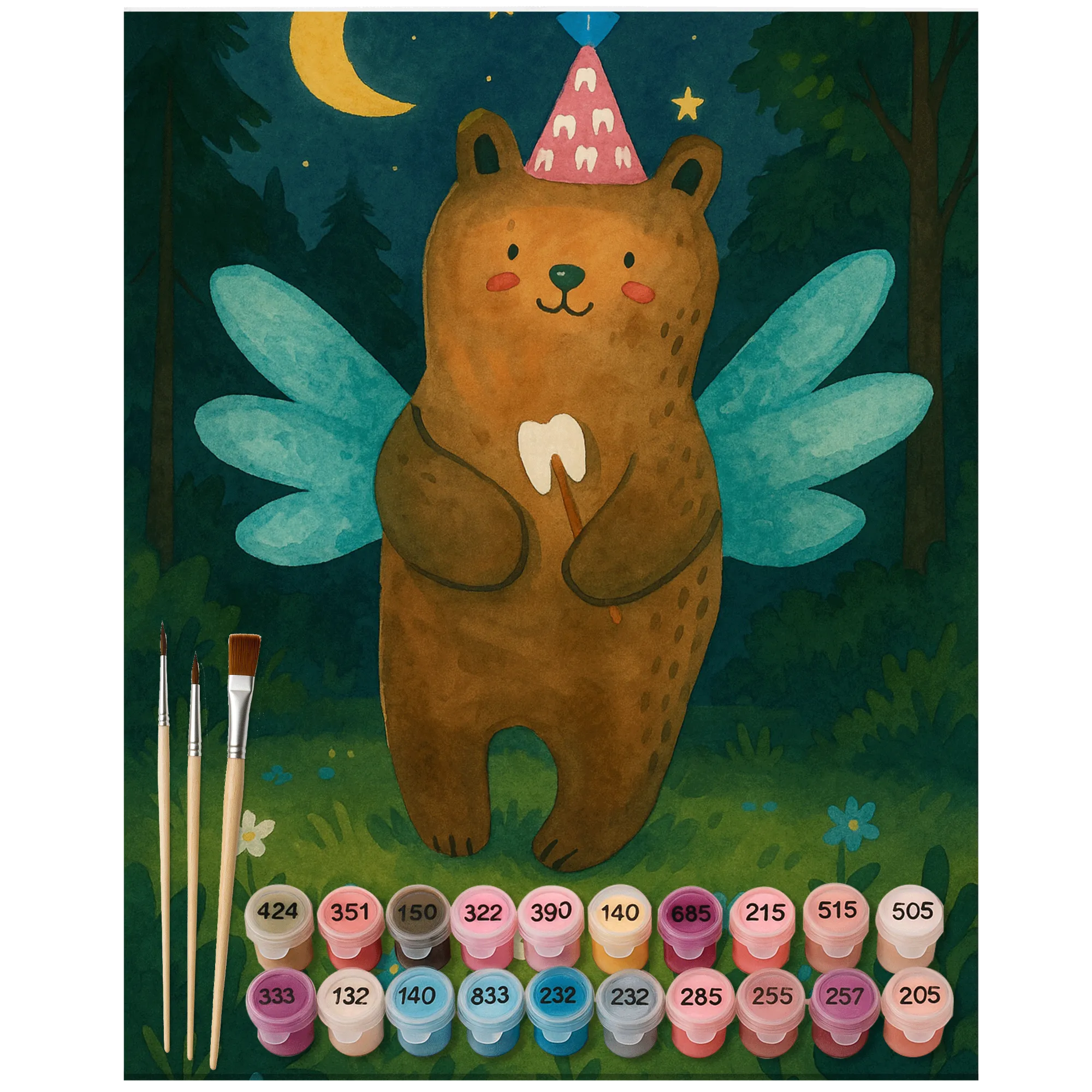 Paint by Numbers bear tooth fairy Design - Ohne Rahmen - 24 Farben (Standard)