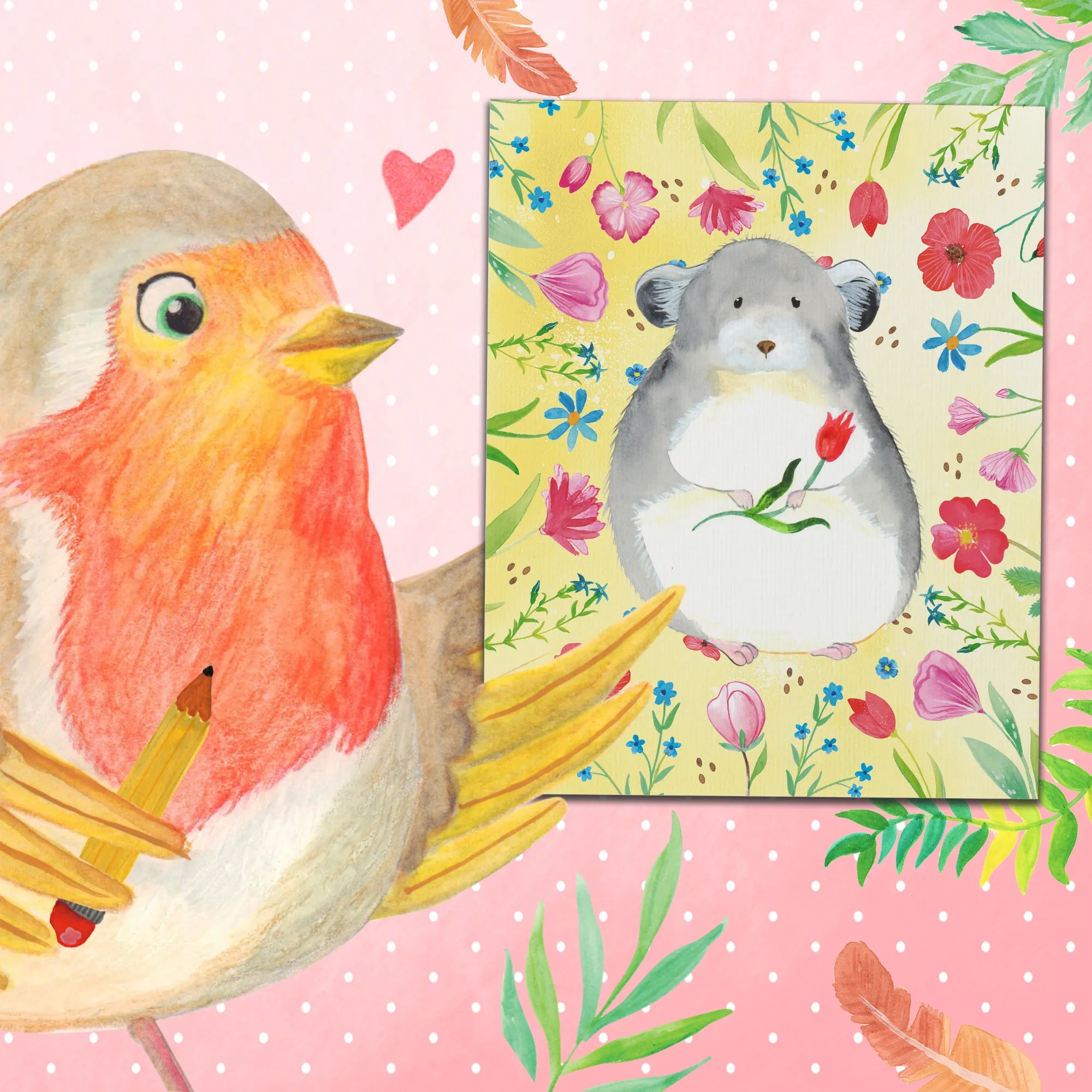 Joyful Chinchilla with Flower – A Whimsical Touch for Your Office or Home