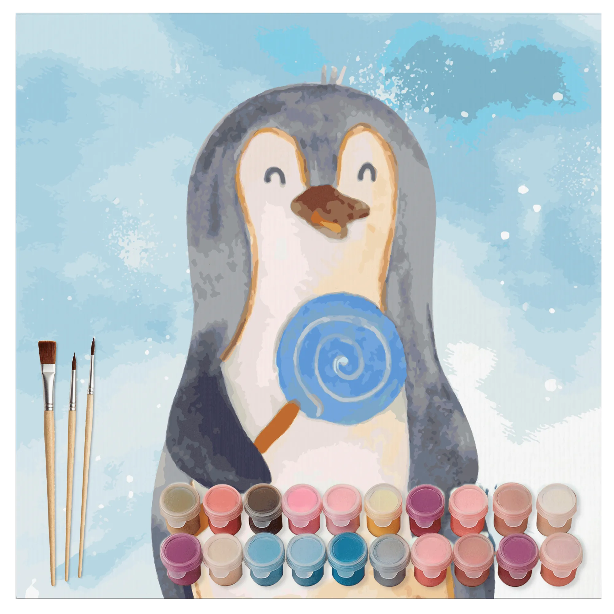 Our Paint by Numbers Penguin Lollipop kit comes beautifully packaged, making it a lovely surprise for anyone who unwraps it. The set includes everything you need: a sturdy canvas, vibrant paints, and easy-to-follow instructions, making it stress-free and enjoyable. So, gather around your loved ones and let your creativity soar while painting this heartwarming scene.