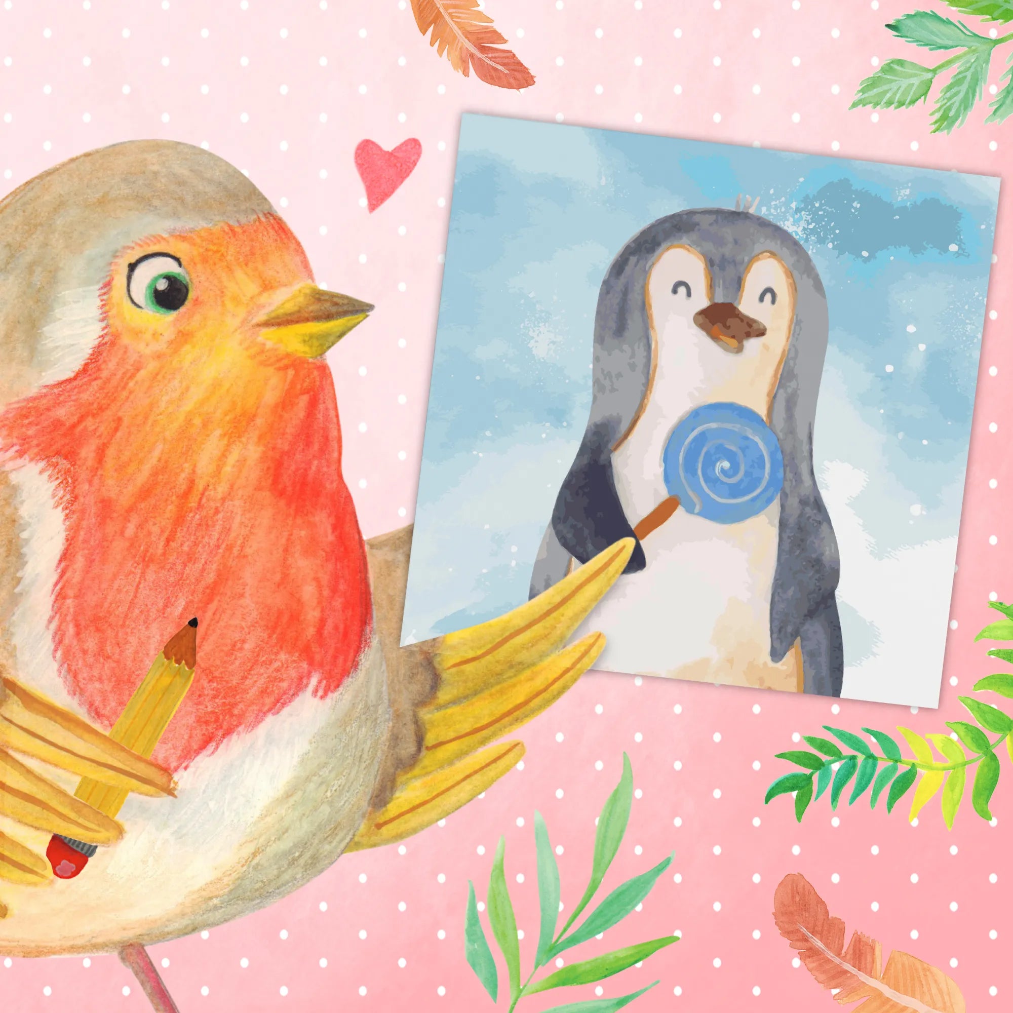 With each brush stroke, you dive deeper into a realm of imaginative colors, transforming a simple canvas into your own version of artistic expression. Our Penguin Lollipop design is crafted with love, showcasing a sweet little penguin with a heartwarming gaze, proudly holding its favorite candy. This cute motif is perfect not just for kids but also for adults looking to relive their childhood joy through art.