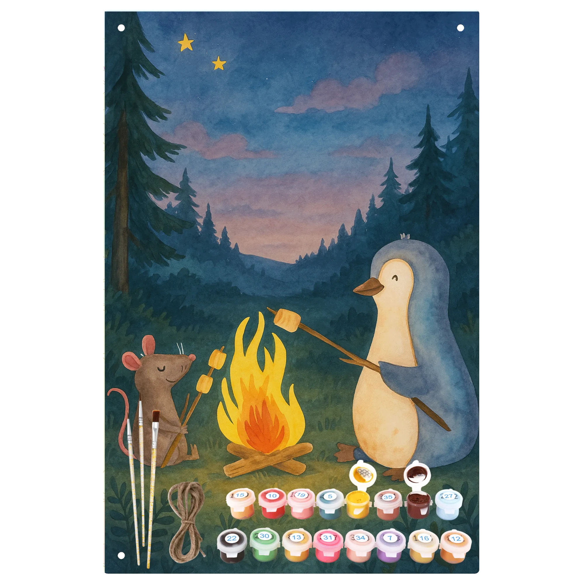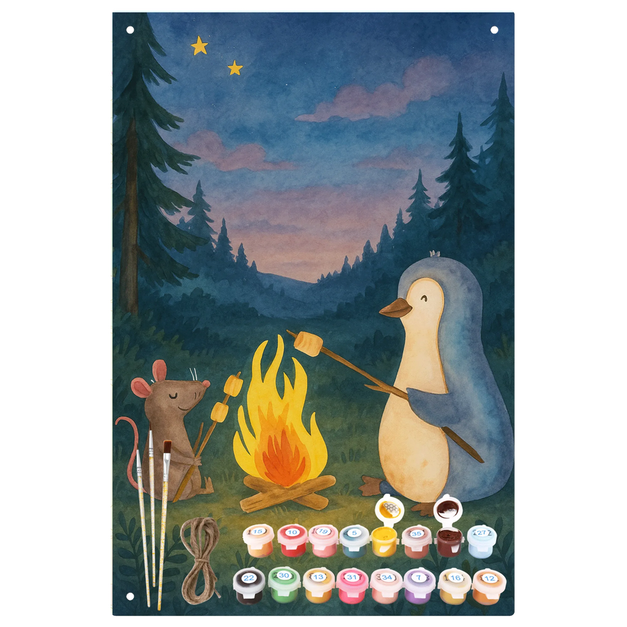 Paint by Numbers Metal Sign Penguin campfire Design
