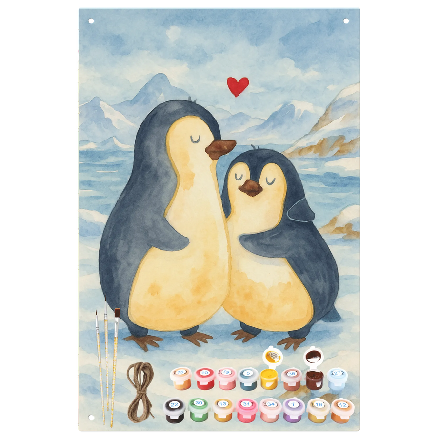 Paint by Numbers Metal Sign Penguin embrace Design
