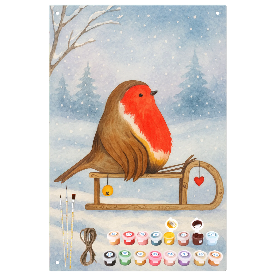 Paint by Numbers Metal Sign robin Sleds Design Winter, Christmas, Christmas time, snow, bird, sleigh