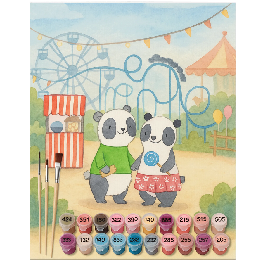 Paint by Numbers pandas visit amusement park Design - Ohne Rahmen - 24 Farben (Standard)