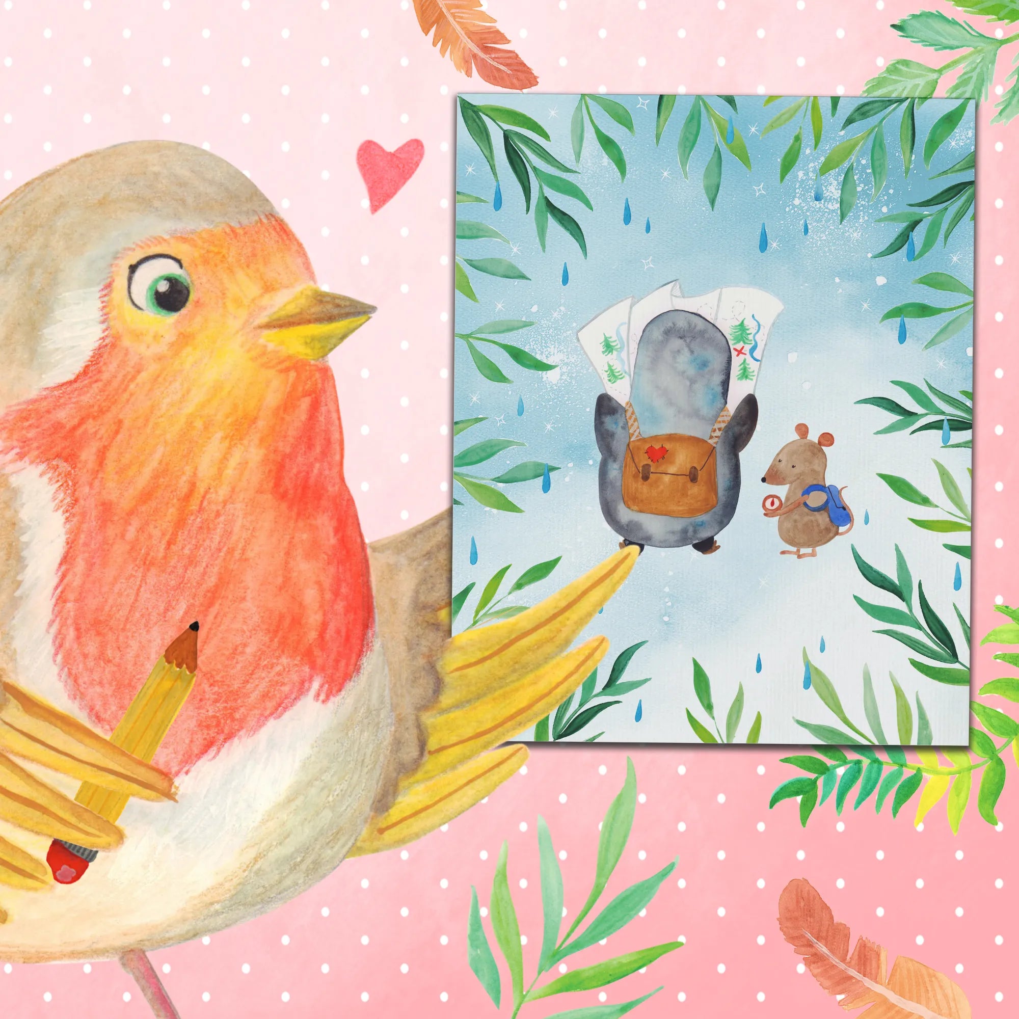 Imagine embarking on a grand adventure, not through the vast terrains of our planet, but through the soulful illustration of a penguin and a mouse. It’s not just an image; it’s a journey. This meticulous artwork showcases a penguin, the embodiment of wanderlust, peering intently into a map, plotting the next destination. Right beside him, a tiny mouse, the symbol of curiosity and bravery, checks a compass, ensuring they’re on the right track. Together, they represent an indomitable spirit of adventure, beckoning you to cast aside the mundane and embrace the beauty of exploration. They don’t just travel; they seek, they discover, and they revel in the joy of each road trip, each hike, each excursion into the unknown. This motif is not just a decoration; it’s a call to the adventurer within, urging you to explore, to dream, and to venture beyond the horizon. It’s a loving reminder from Mr. & Mrs. Panda that adventure awaits, with every glance at this inspiring duo.