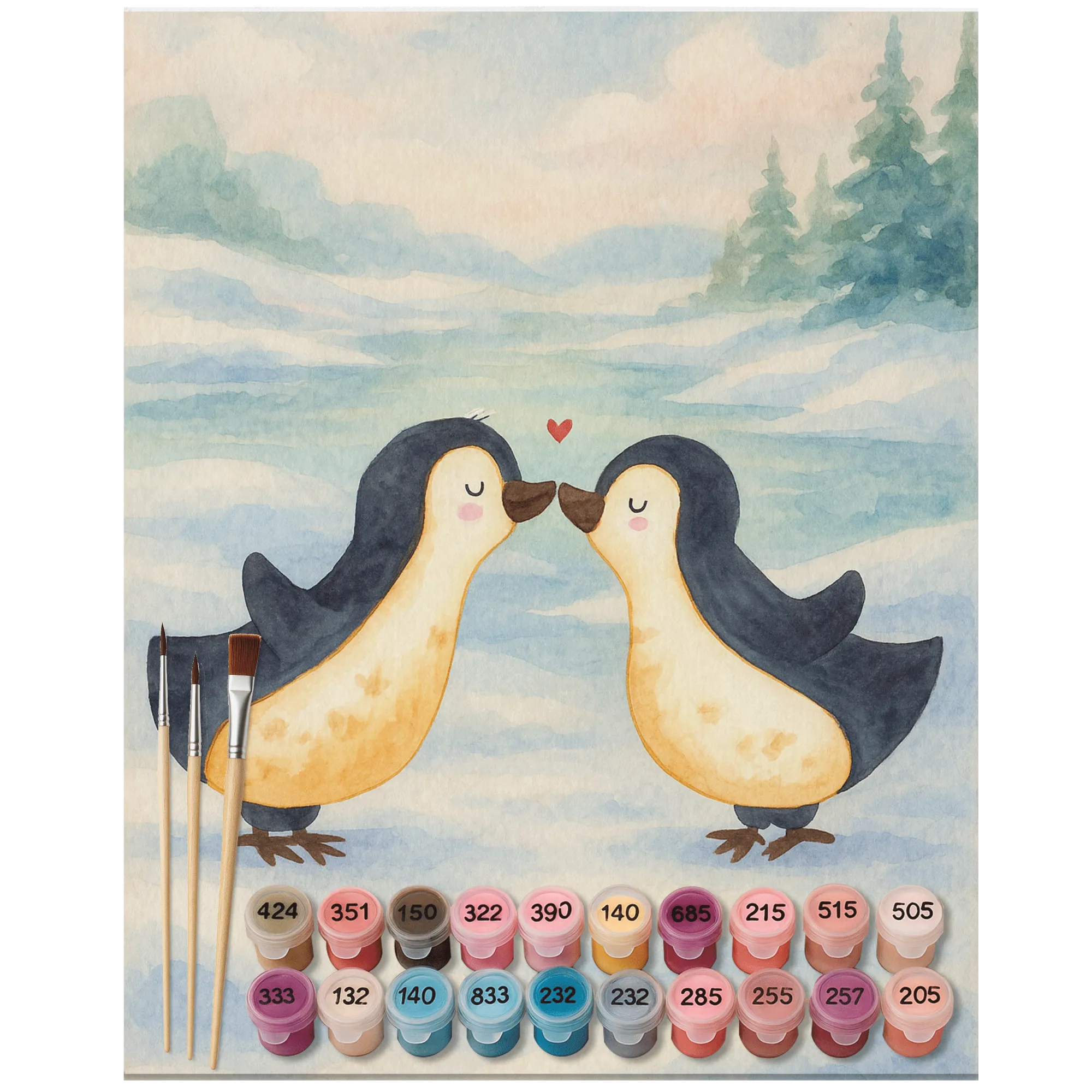 Paint by Numbers Penguins in love Design - Ohne Rahmen - 24 Farben (Standard)