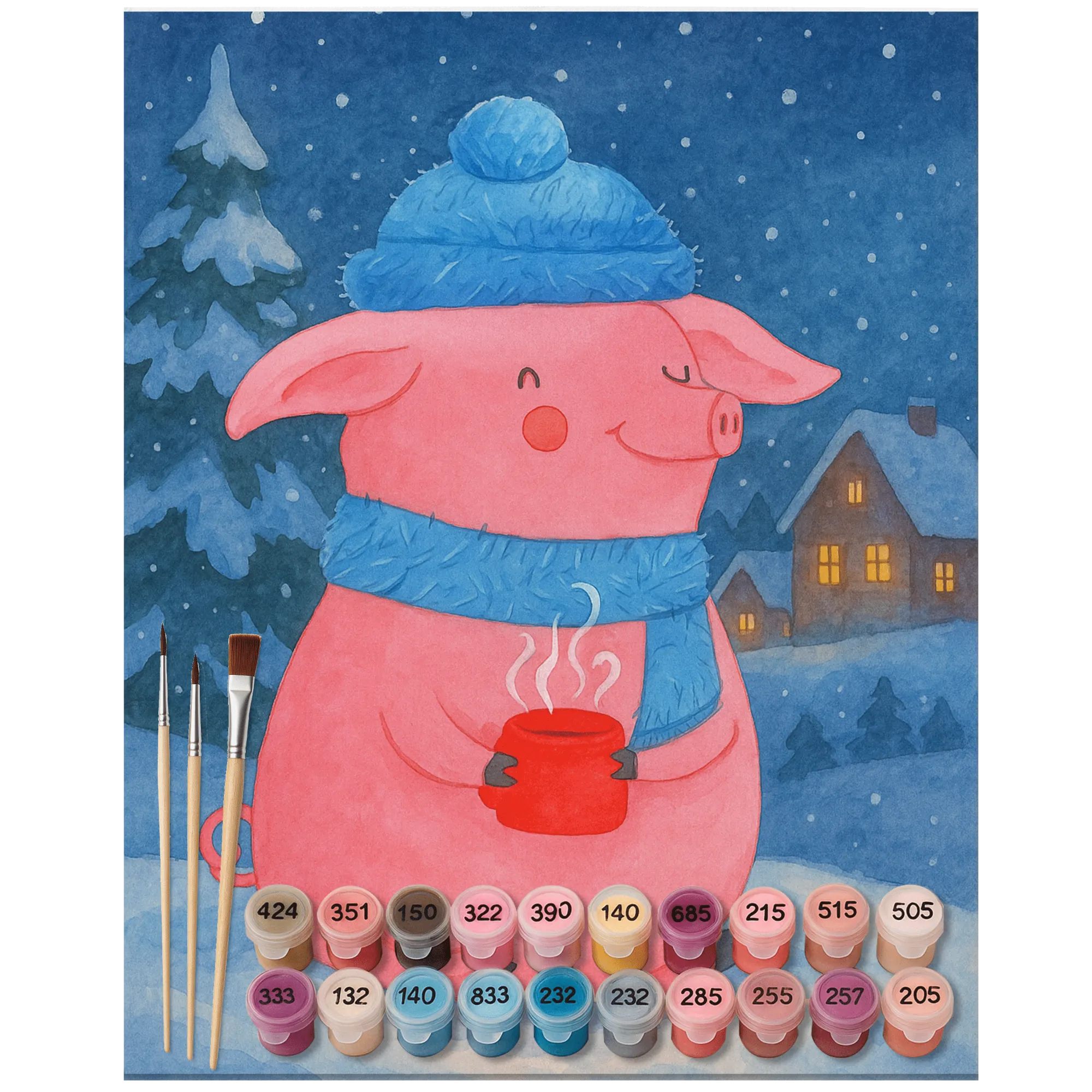 Paint by Numbers Pig Mulled wine Design - Without frame - 24 Colors (Standard)