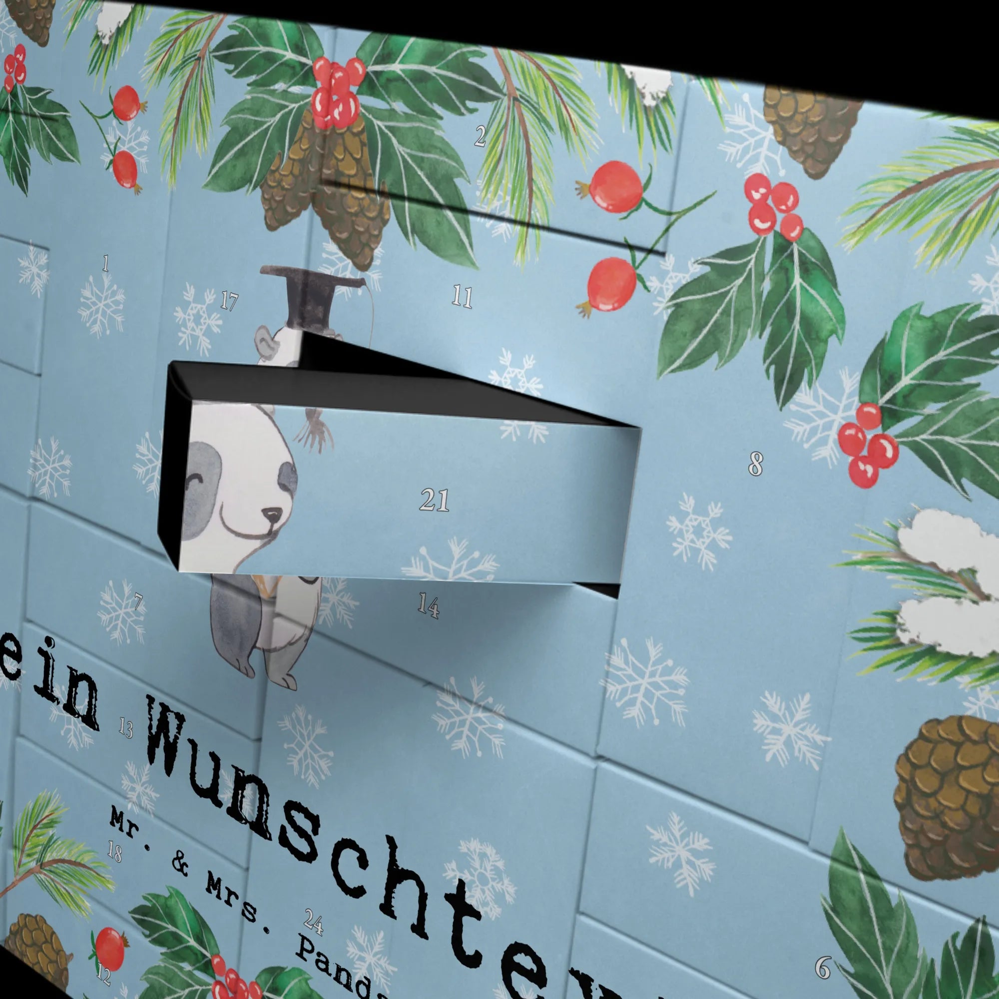 Personalisierter Befüllbarer Adventskalender von Mr. & Mrs. Panda – dein perfekter Begleiter durch die Vorweihnachtszeit! Dieser liebevoll gestaltete Adventskalender ist bedruckt mit wunderschönen Sprüchen und Motiven von Mr. & Mrs. Panda und lässt sich ganz nach deinem Geschmack personalisieren: Trage deinen Wunschnamen oder Wunschtext ein, und wir drucken ihn auf die Vorderseite. Auf der Frontseite findest du eine zauberhafte Zeichnung von Mrs. Panda, die dem Kalender einen warmen, persönlichen Touch verleiht. Der Kalender verfügt über 24 praktische Schachteln zum Selbstbefüllen, ideal für kleine Überraschungen, Süßigkeiten oder liebe Botschaften. Material: stabiler Adventskalender Karton mit brillanter Druckqualität und seidenmatter Oberfläche für eine hochwertige Optik. Besonderheit: inklusive Aufstellvorrichtung, sodass du den Kalender überall dekorativ platzieren kannst. Besonderer Hinweis: wird ohne Füllung geliefert – so kannst du ihn individuell bestücken. Maße: Breite: 619 mm, Höhe: 405 mm, Tiefe: 50 mm. Ein tolles Geschenk für Familie, Freunde oder als persönliche Deko für dein Zuhause. Bestelle jetzt deinen personalisierten Adventskalender und erfreue deine Liebsten jeden Tag im Dezember mit kleinen Überraschungen!