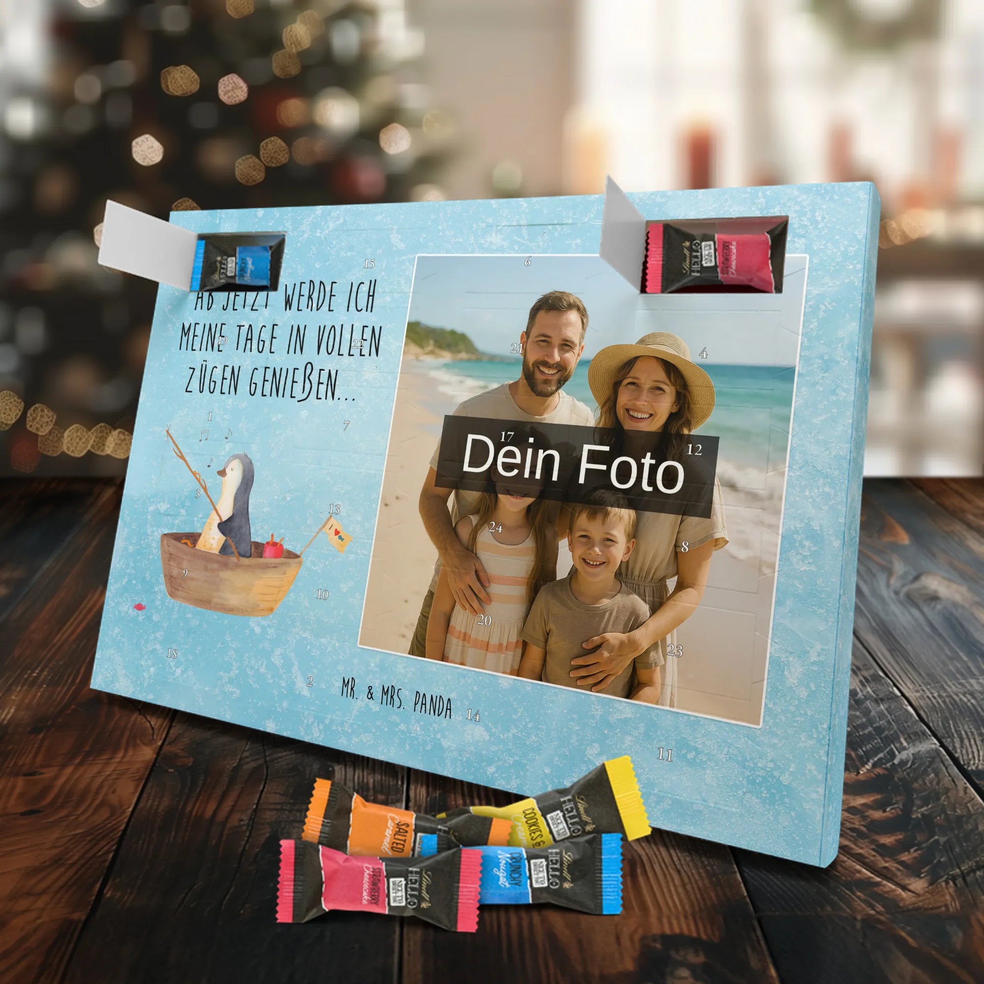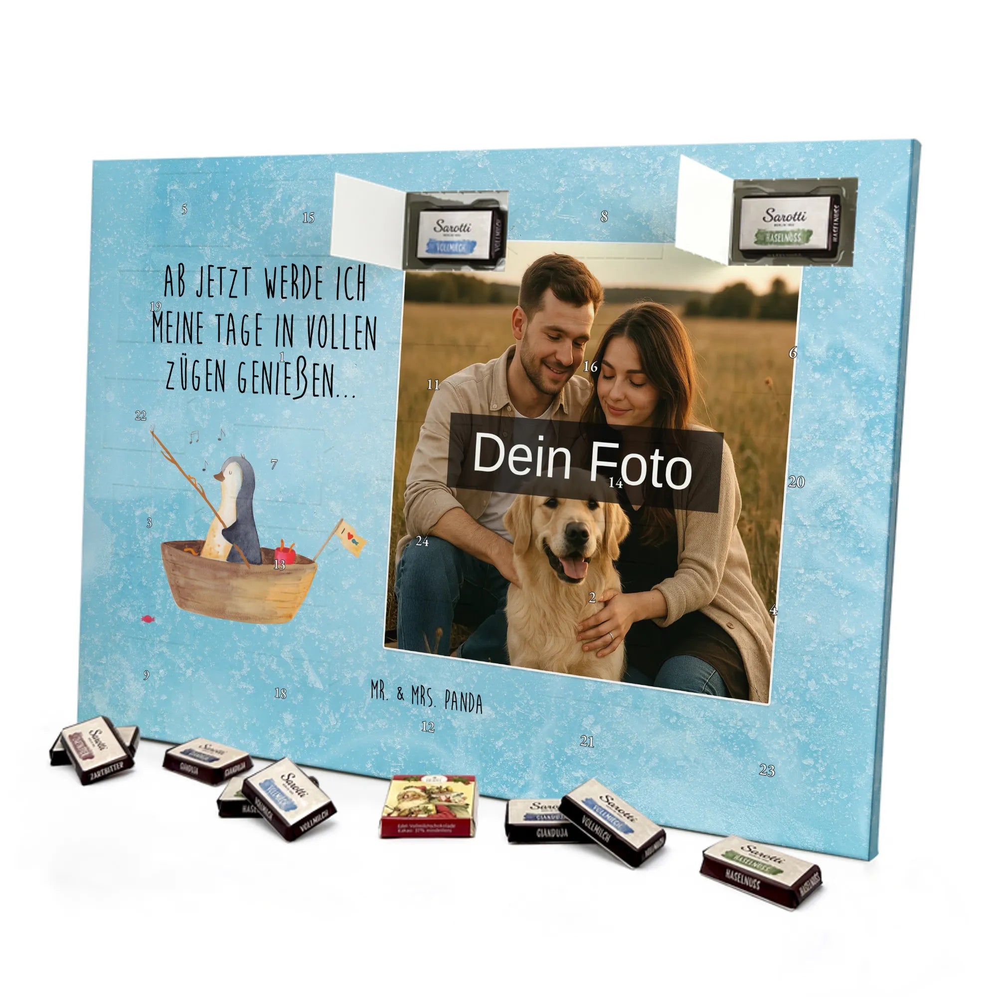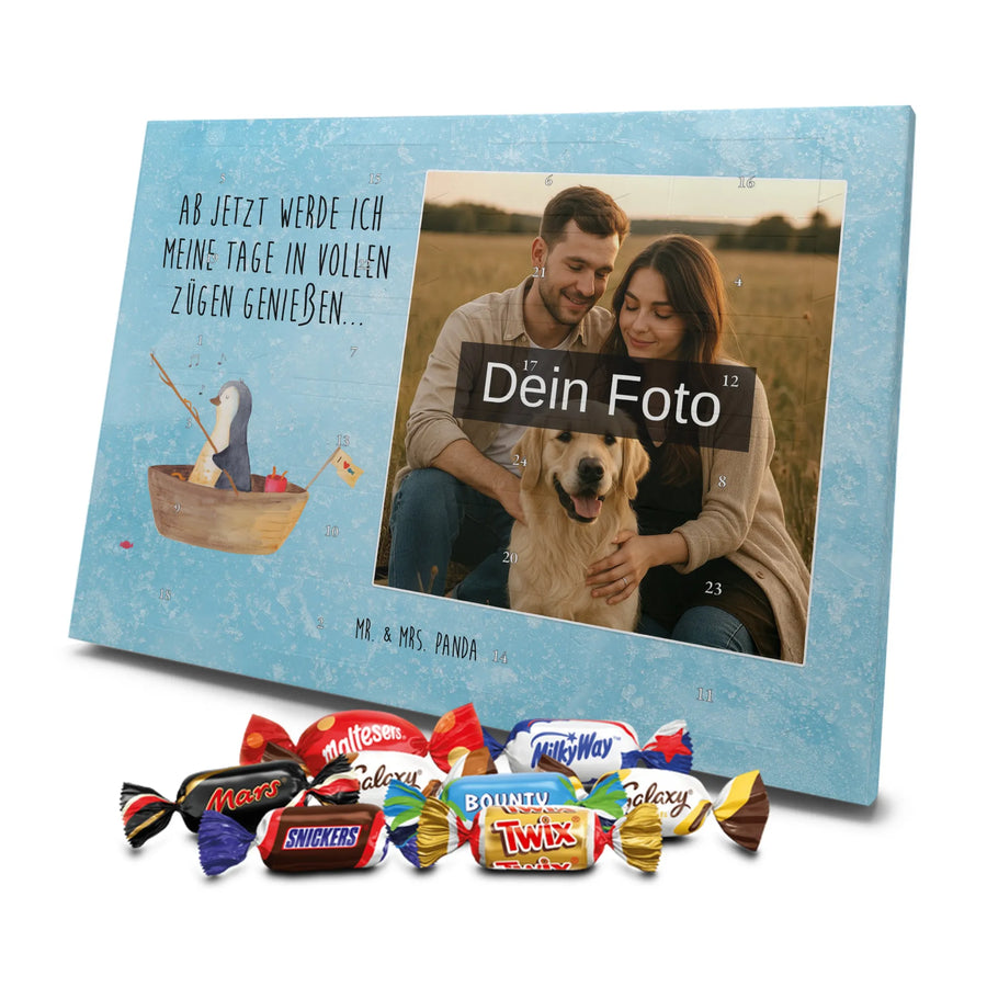 Personalisierter Foto Adventskalender mit Schokolade – die perfekte Überraschung in der Adventszeit von Mr. & Mrs. Panda! Dieser Kalender kombiniert unsere charmanten Motive und Sprüche mit deinem eigenen Foto und wird auf seidenmattes Material gedruckt, das wunderbar wirkt. Achte bei der Personalisierung auf eine hohe Auflösung deines Fotos und einen passenden Bildausschnitt, damit Gesichter und wichtige Details nicht verloren gehen. Verwende nur Bilder, für die du die Bildrechte besitzt. Bedruckte Seitenflächen und brillante Druckqualität machen den Kalender zu einem echten Hingucker. Maße: 355 mm x 245 mm x 11 mm; praktisch zum Aufhängen oder Aufstellen. Besonderheit: Fotos werden nicht nachbearbeitet oder zugeschnitten – Rücknahme bei personalisierten Foto Artikeln ist ausgeschlossen. Gefüllt ist der Kalender mit einer hochwertigen Auswahl an 24 einzeln verpackten Schokoladentäfelchen von Sarotti® und Confiserie Heidel® in vier leckeren Geschmacksrichtungen. Insgesamt enthält der Kalender 107 g Markenschokolade in den Sorten Vollmilch, Nougat, Zartbitter und Haselnuss. Verschenke Freude, Persönlichkeit und süßen Genuss in einem – mit viel Liebe von Mr. & Mrs. Panda.