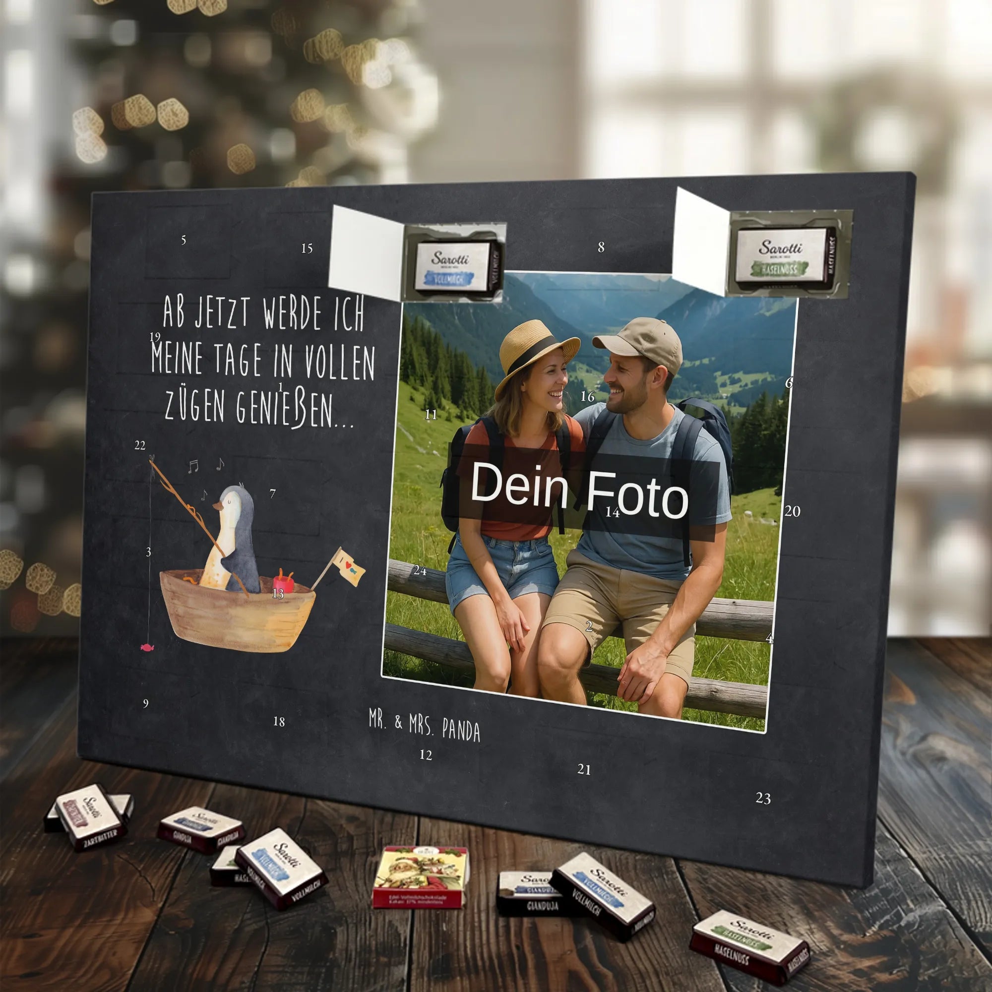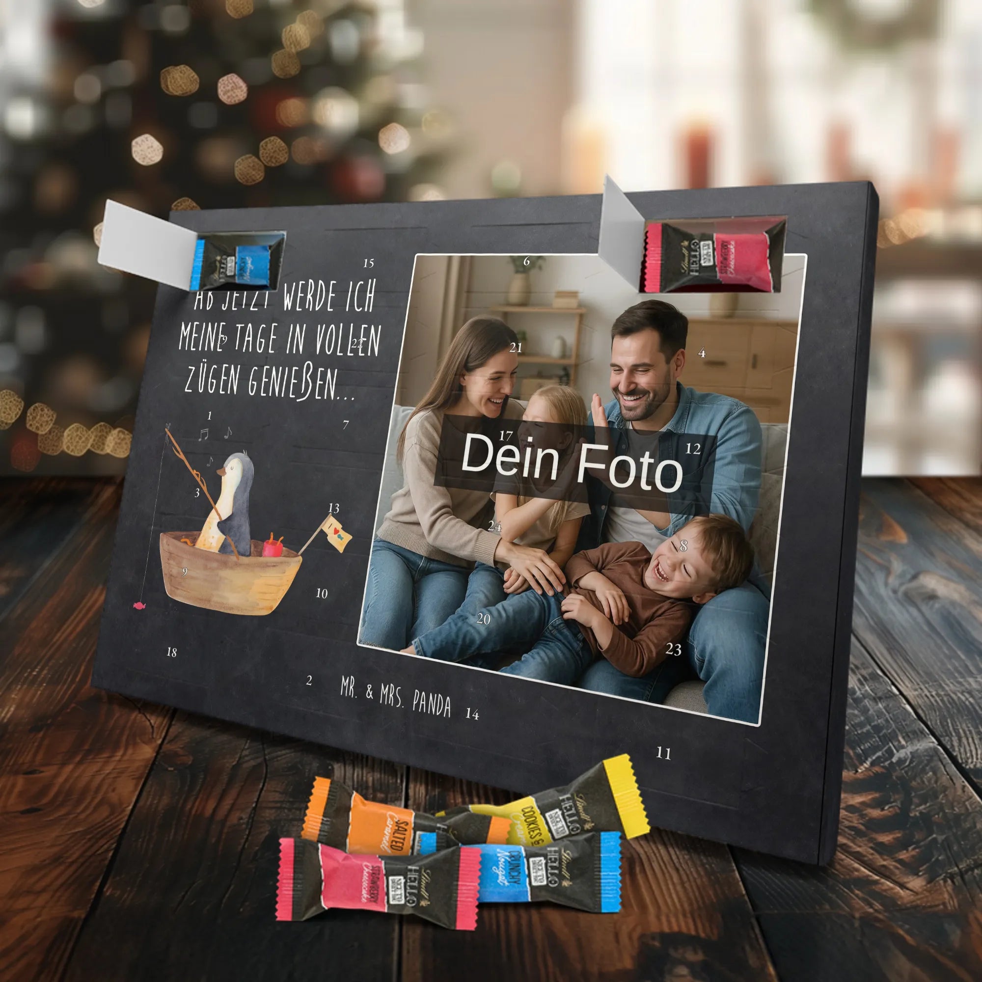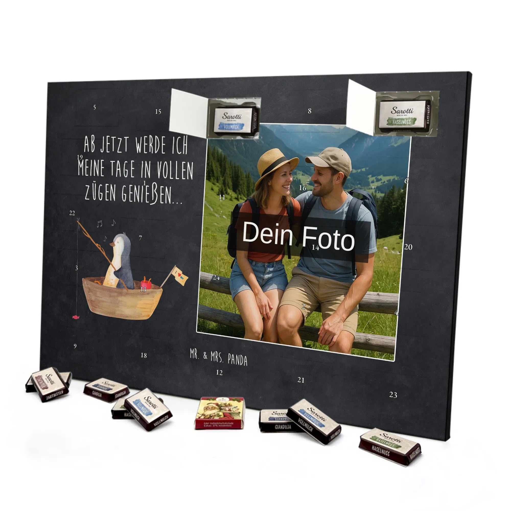 🐼 Ideales Foto-Geschenk: Personalisierter Schoko Foto Adventskalender mit Mr. & Mrs. Panda Sprüchen und deinem Bild.