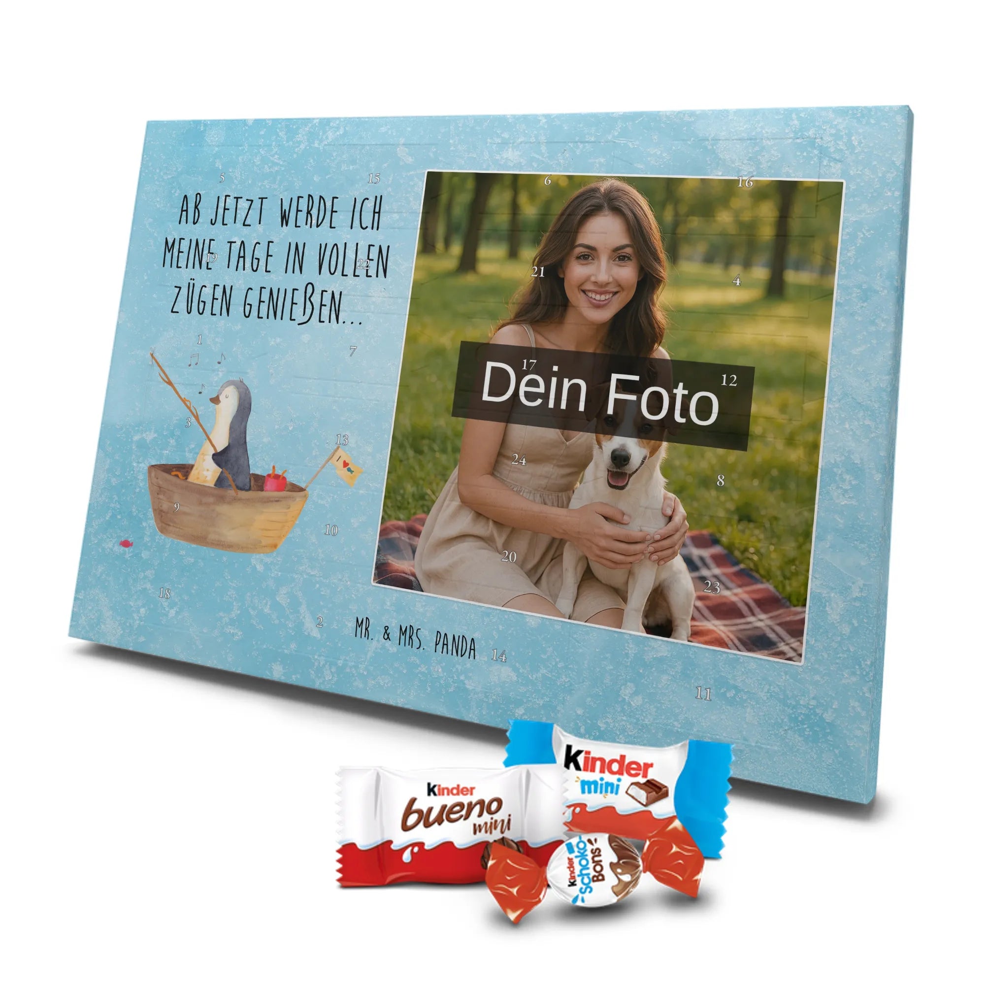 Unser personalisierten Schoko Foto Adventskalender ist ein echtes Highlight in der Adventszeit – handlich, individuell und voller süßer Überraschungen. Du personalisierst die Vorderseite mit deinem liebsten Foto und wir kombinieren es mit liebevollen Motiven und Sprüchen von Mr. & Mrs. Panda. Bitte achte auf eine ausreichende Bildauflösung und einen passenden Bildausschnitt, damit das Druckergebnis gestochen scharf ist. Lade nur Bilder hoch, deren Rechte du besitzt oder bei denen du die Erlaubnis hast, besonders wenn Personen darauf zu sehen sind. Wichtig: Fotos werden nicht retuschiert oder zugeschnitten; personalisierte Foto-Artikel sind vom Widerruf ausgeschlossen. Der Kalender besticht durch brillante Druckqualität und eine seidenmatte Oberflächenveredelung sowie bedruckte Seitenflächen. Maße: 355 mm x 245 mm x 11 mm. Du kannst ihn entweder aufstellen oder an die Wand hängen. Gefüllt ist der Adventskalender mit kinder® Schokolade, inklusive kinder® Schoko-Bons, kinder® Bueno mini und kinder® Schokolade mini. Ein liebevolles, persönliches Geschenk für Kinder, Freunde oder die bessere Hälfte – individuell, süß und mit dem typischen Mr. & Mrs. Panda Charme.