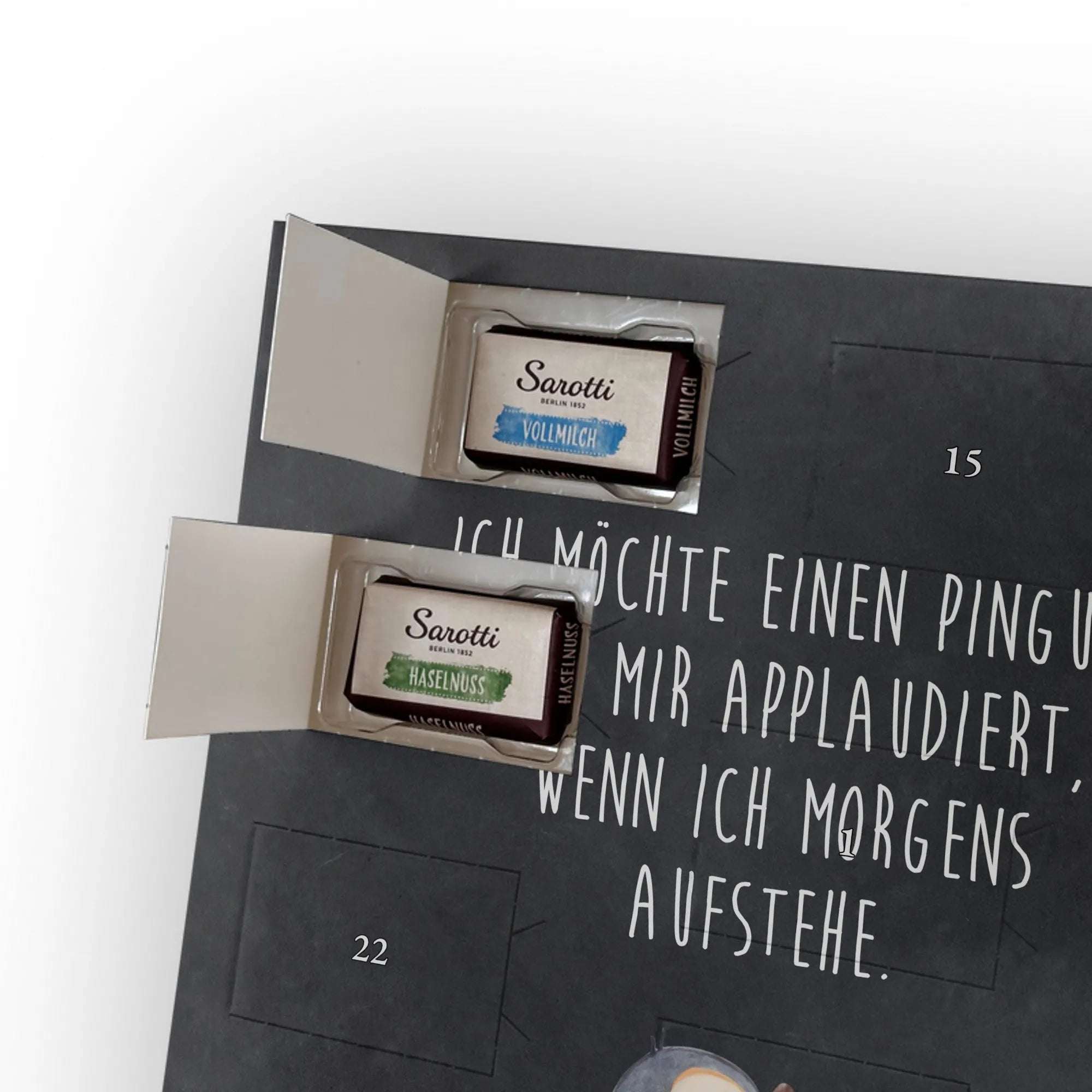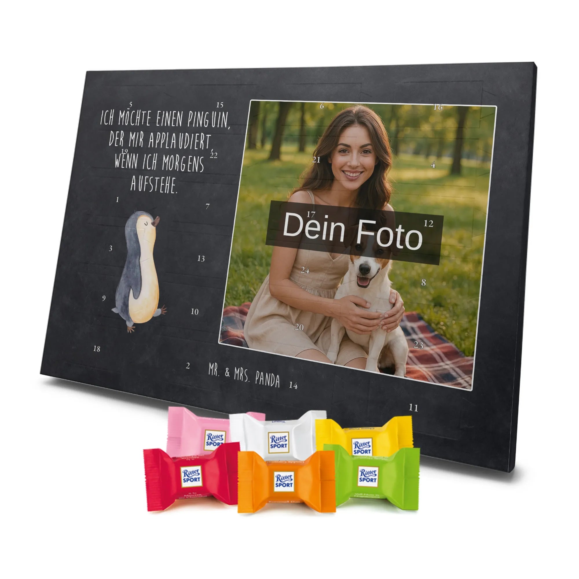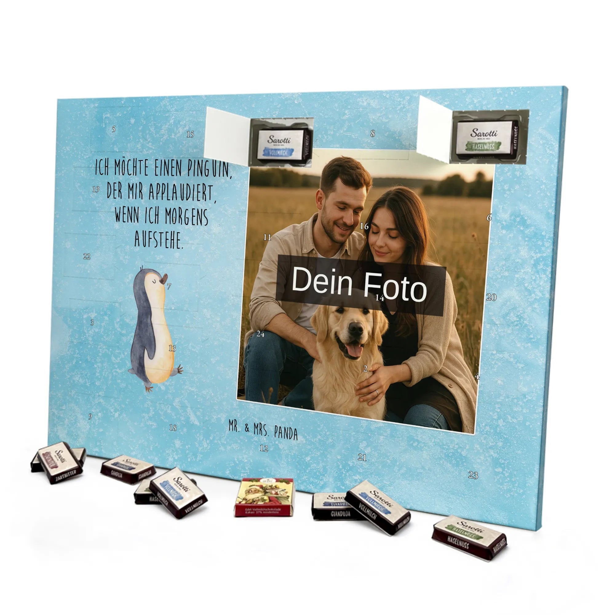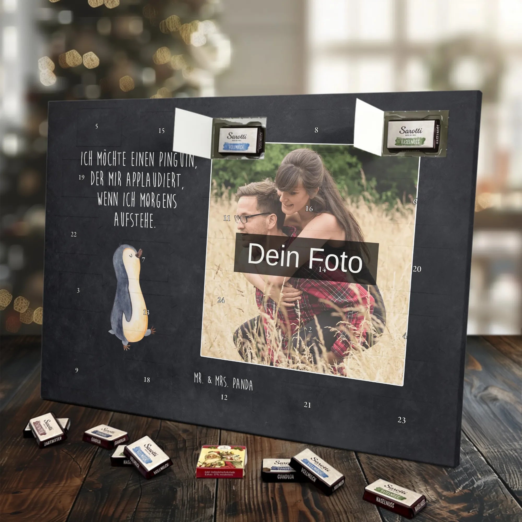 Personalisierter Schoko Foto Adventskalender „Pinguin marschierend“ – aus der liebevoll gestalteten Pinguin - Kollektion von Mr. & Mrs. Panda. Unser kleiner, tollpatschig-fröhlicher Pinguin trägt den Slogan: „Ich möchte einen Pinguin, der mir applaudiert, wenn ich morgens aufstehe.“ und macht so jeden Dezembermorgen zu einem besonderen Ereignis.