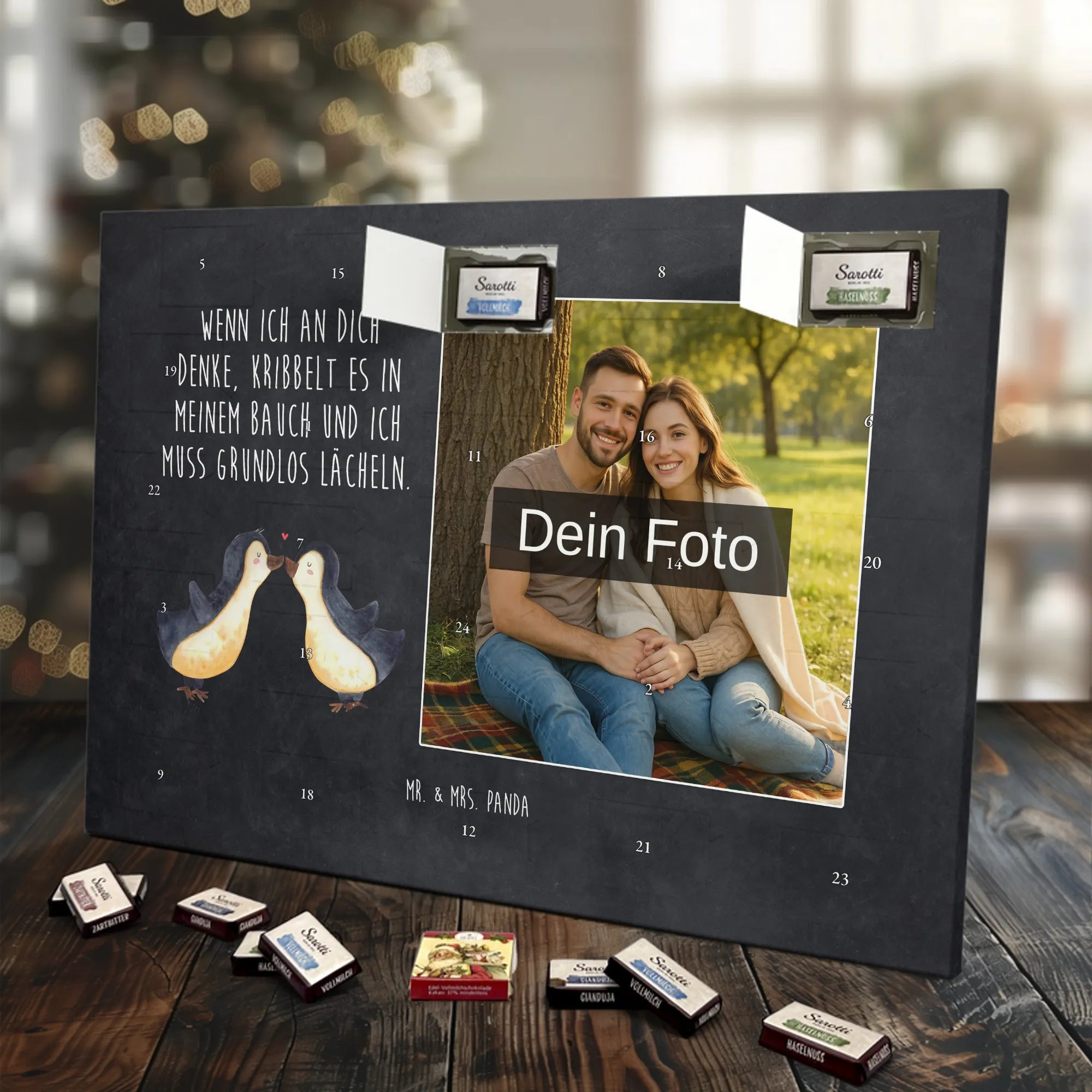 In this lovely motif, two penguins softly lean into a kiss, creating a moment filled with tenderness and affection. Their joyful expressions and closed eyes bring forth a sense of peace and joy. The colors, primarily soft yellows and greys, enhance the enchanting ambiance. A heart floats between them, capturing the essence of their love. This artwork serves as an ideal gift for a wedding anniversary, or as a unique Valentine’s Day gift that speaks to the heart and soul. It's a perfect representation of how love fills our lives with happiness, as expressed in the saying: 'When I think of you, I get butterflies in my stomach and can’t help but smile.'