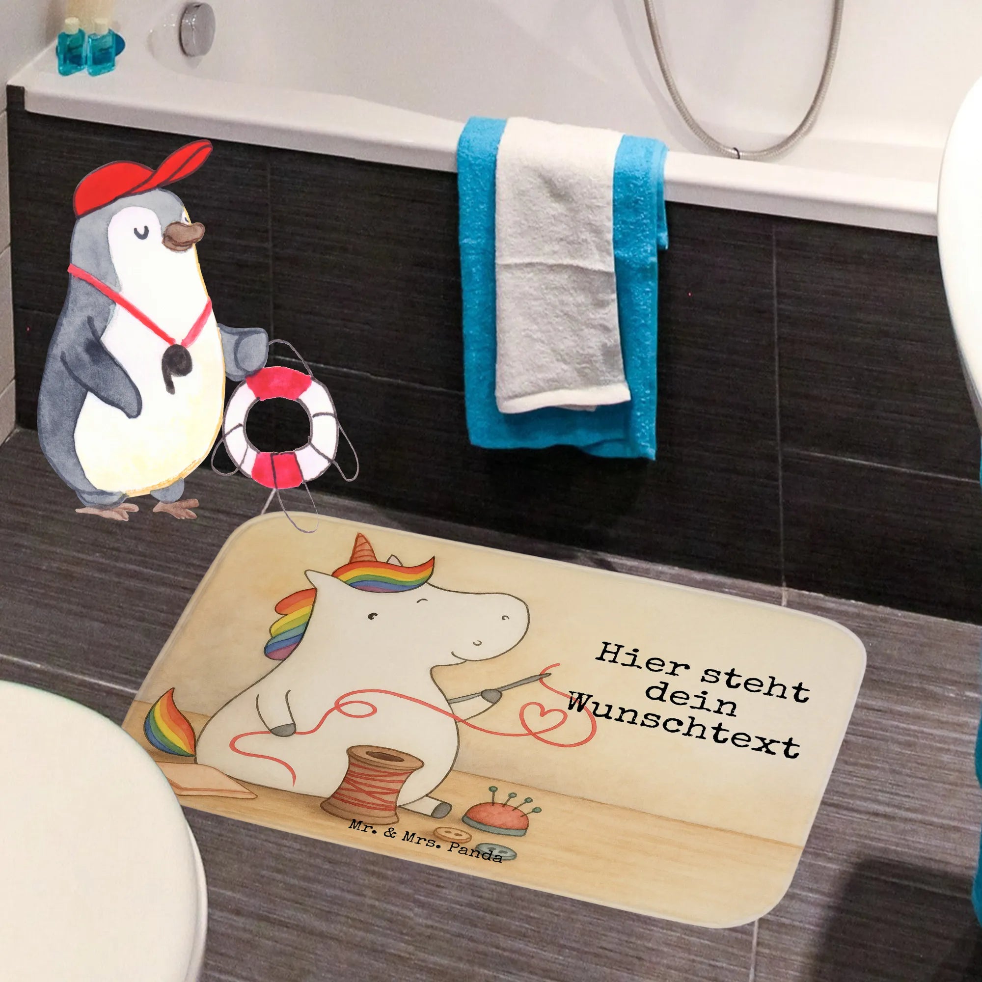 Personalised bath mat unicorn seamstress Design