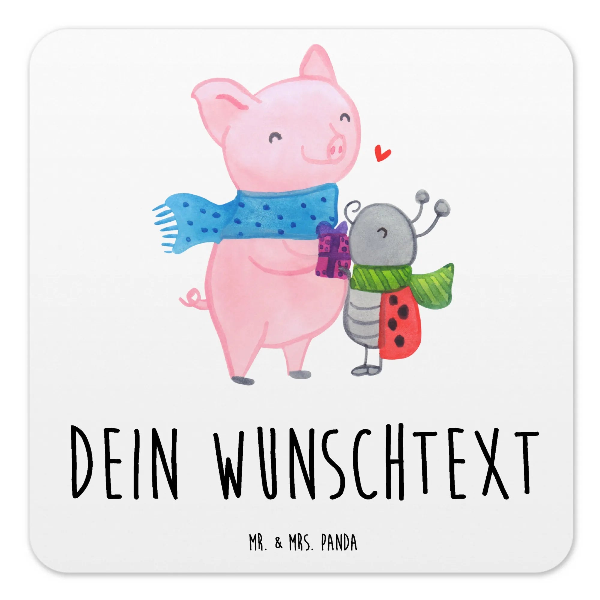 Personalised Coaster Set Glow Pig Snuggle - 15-piece set - Ice blue
