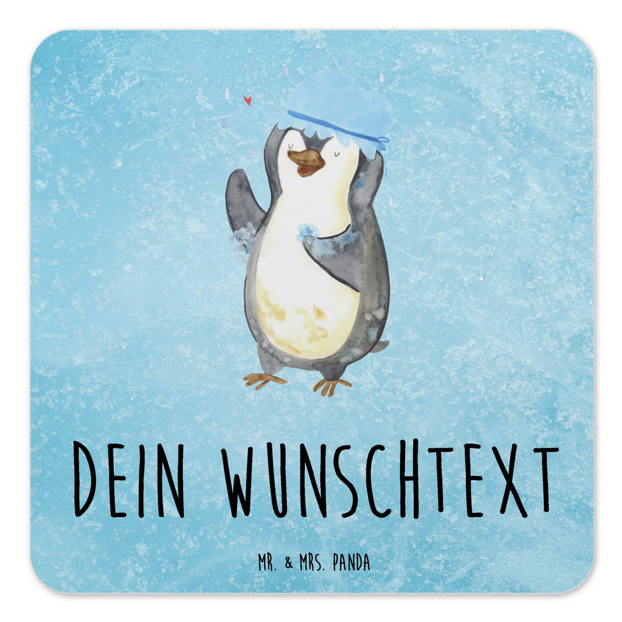 Personalised Coaster Set Penguin have a shower - 15-piece set - Ice blue