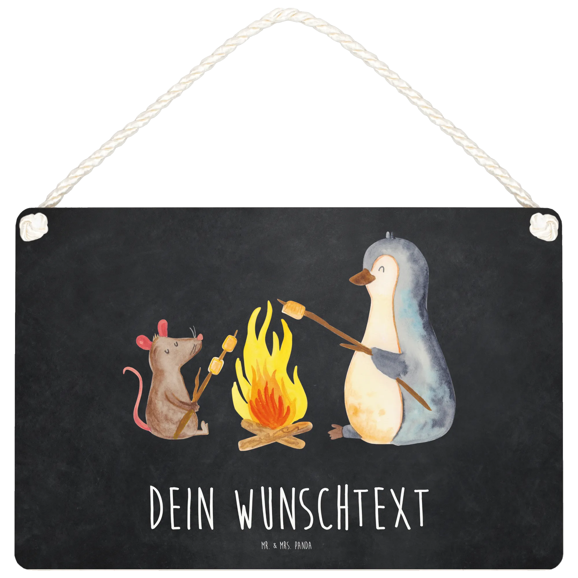 Personalised decorative sign Penguin campfire - DIN A6 - White