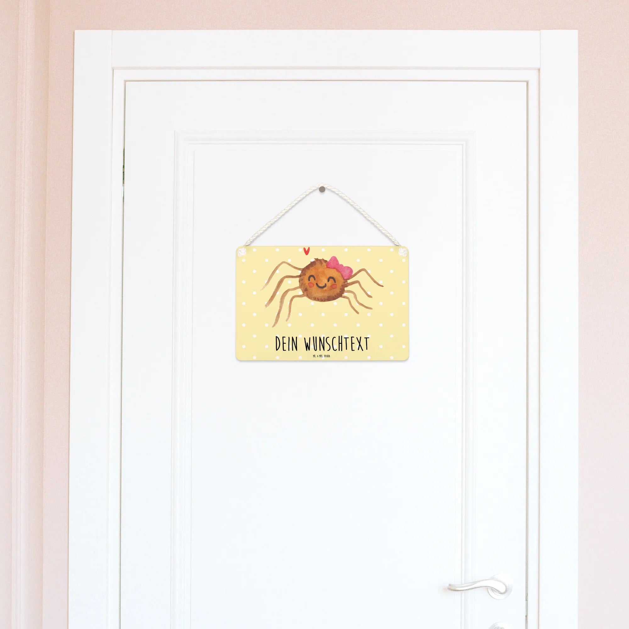 Personalised decorative sign Spider Agathe Joy - DIN A6 - Yellow Pastel