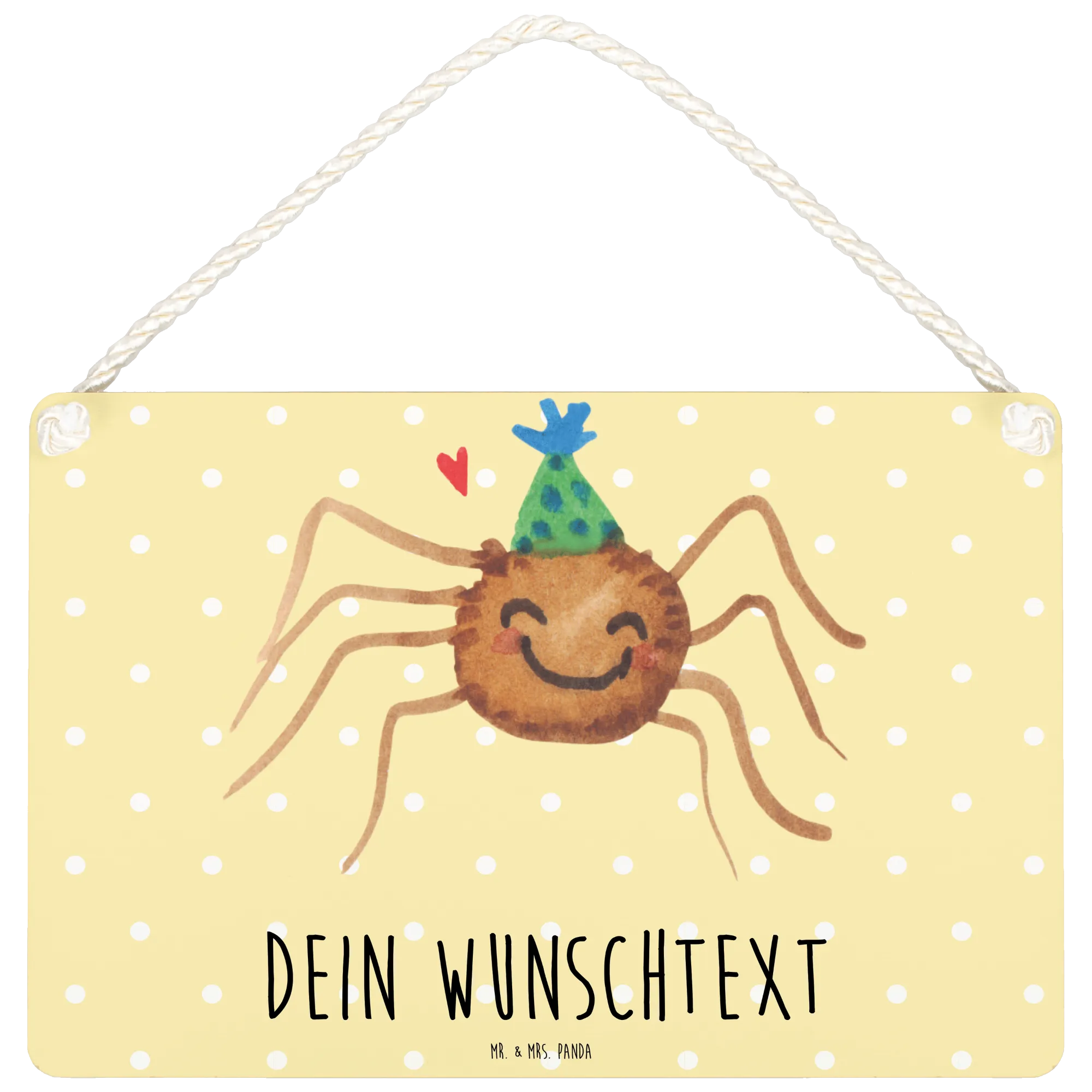 Personalised decorative sign Spider Agathe Party - DIN A6 - Pastel Yellow
