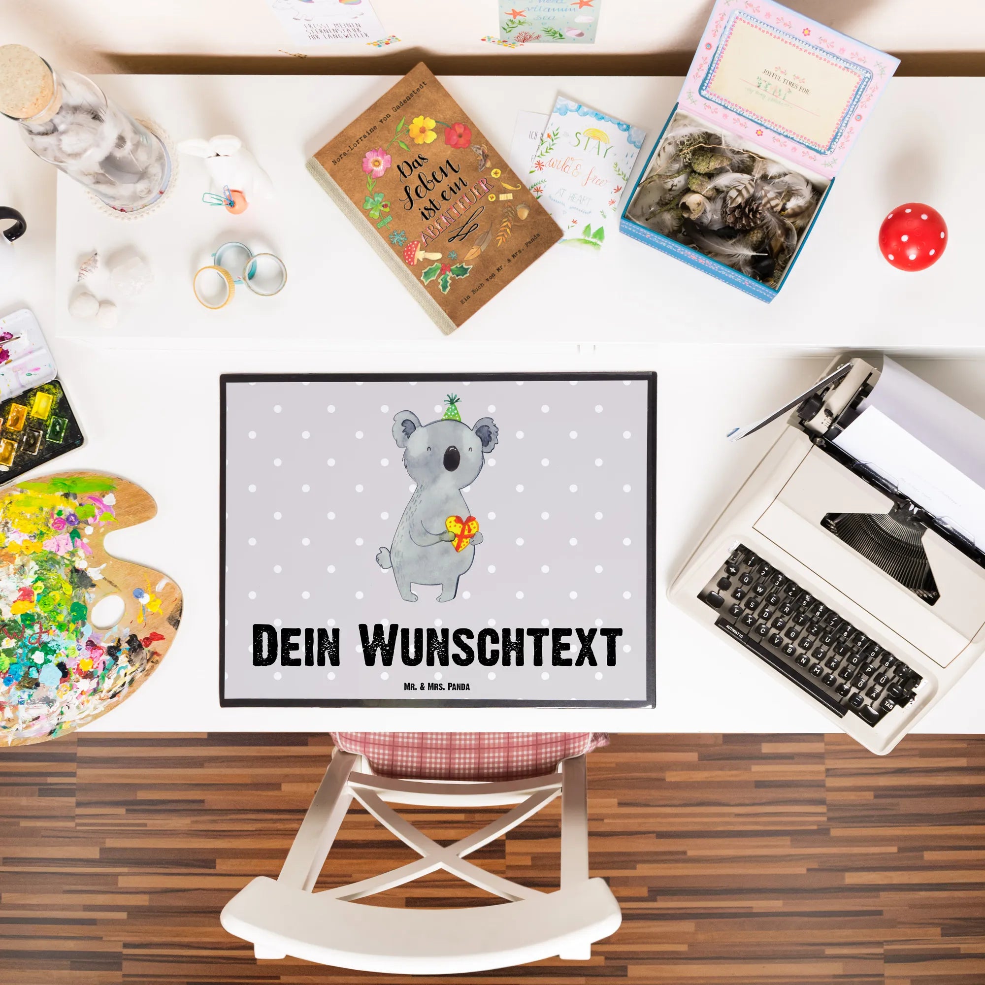 Meet our lovable koala, adorned with a bright party hat, clutching a heart-shaped gift wrapped just for you. This motif radiates the spirit of celebration and friendship. Its slogan, 'Ich schenke dir von Herzen Sonnenschein, denn du darfst niemals traurig sein,' beautifully conveys our wish to uplift and spread joy. Each present is not merely a package; it's a piece of our hearts, a token of warmth and affection. This charming koala invites you to cherish the moments we celebrate together, reminding you to always keep joy at the forefront. Let this delightful design be a daily reminder to share laughter and love, nurturing connections that bring sunshine into our lives.