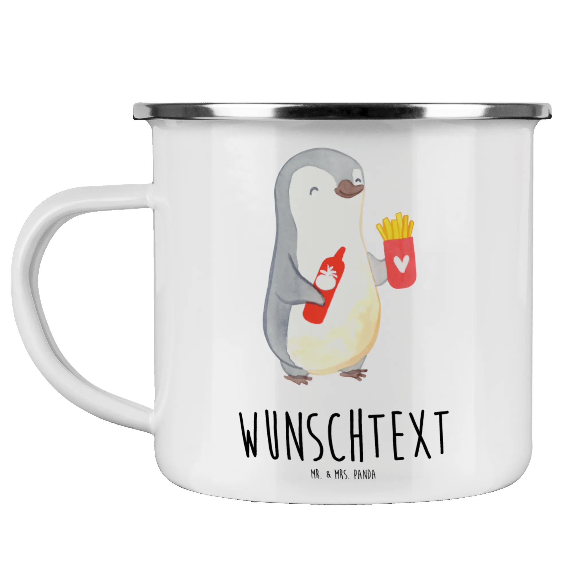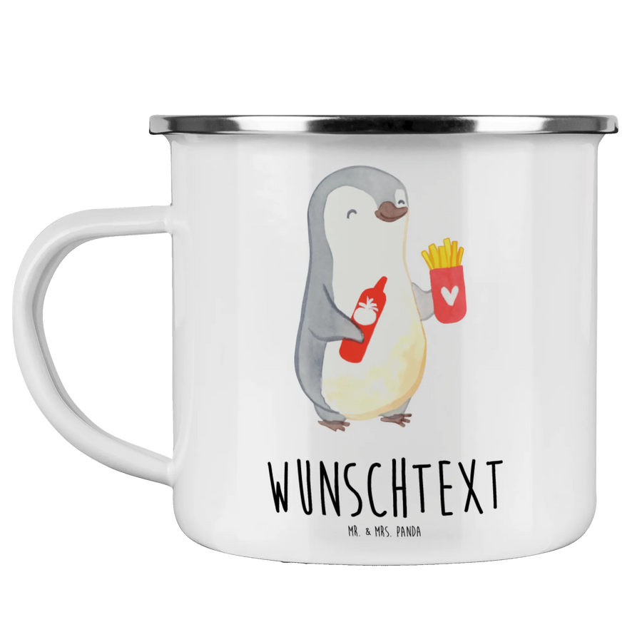 Personalised enamel cup penguin French fries