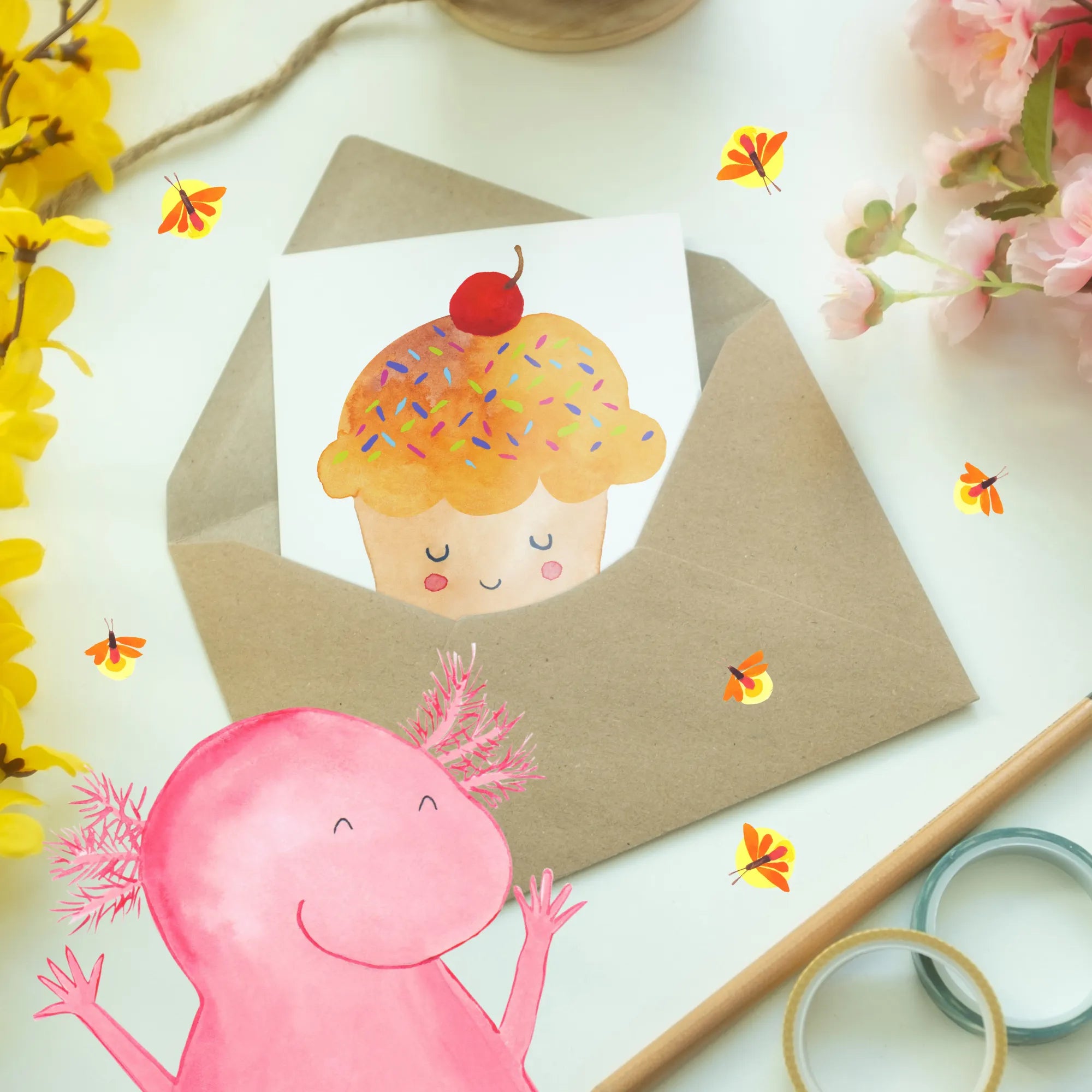 The cupcake drawing is a particularly cute motif from the Mr. & Mrs. Panda collection.