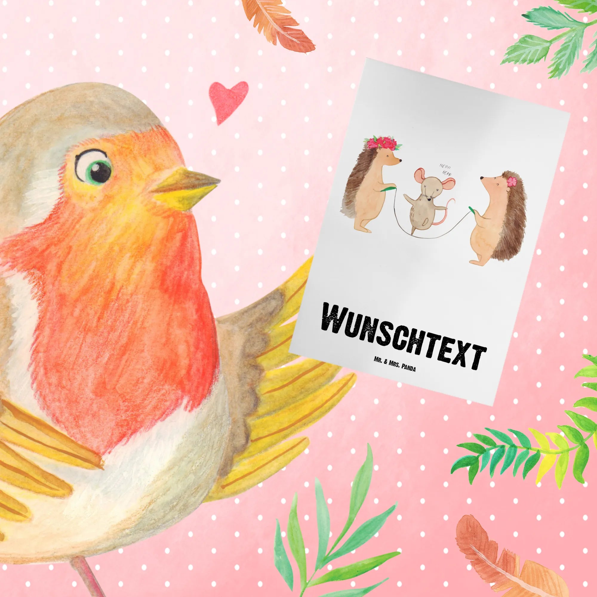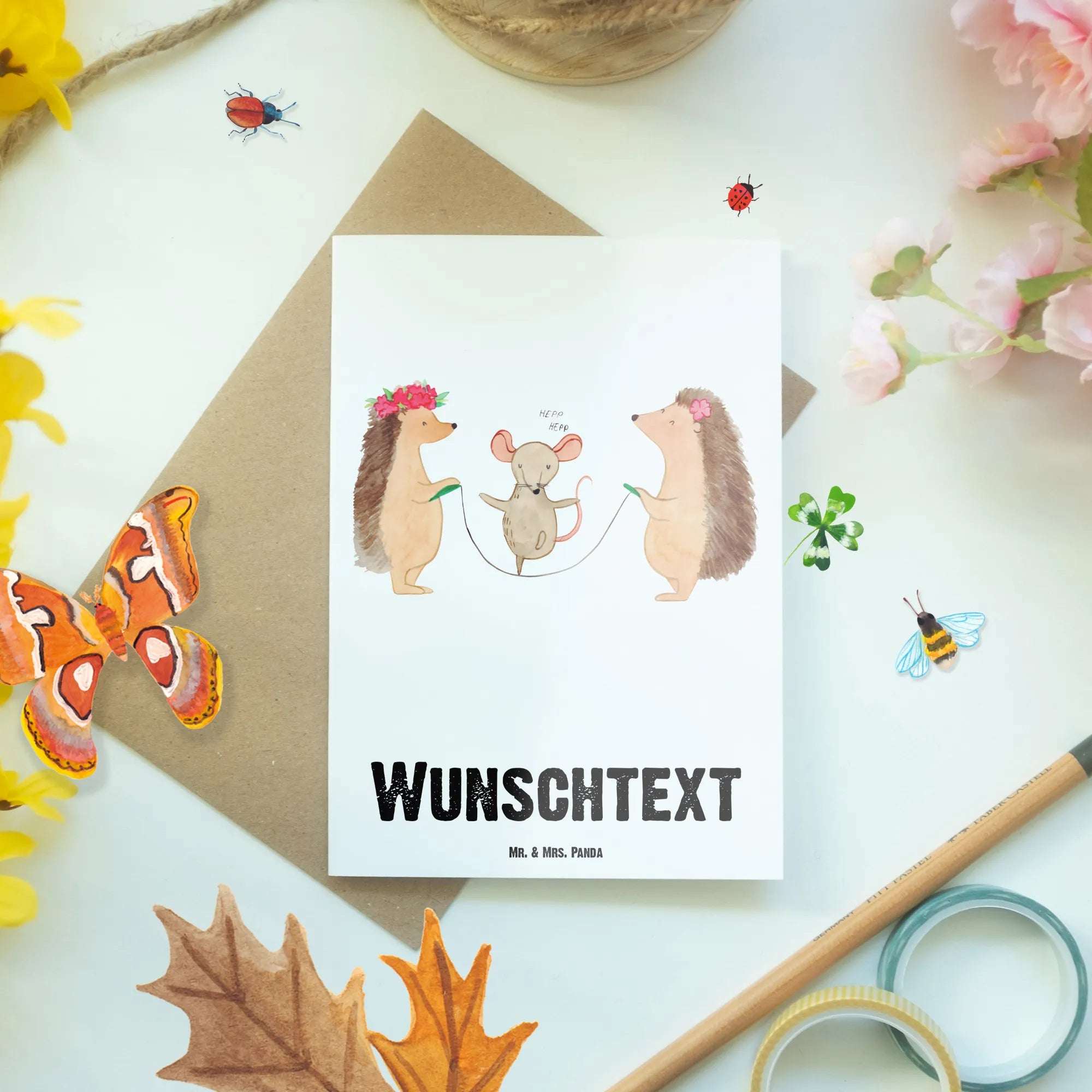 Imagine the joy unfolding as two adorable hedgehogs skip rope merrily, their little hearts filled with excitement. A playful mouse joins the fun, embodying the spirit of childhood friendship. This lovely motif serves as a reminder of the laughter and silliness that define true connections. Just like the saying goes, "This is for that special kind of friend: the one who’s known you forever, learned all your secrets and seen how crazy you really are... and love you anyway!" Celebrate the precious bonds that make life special with this delightful piece.