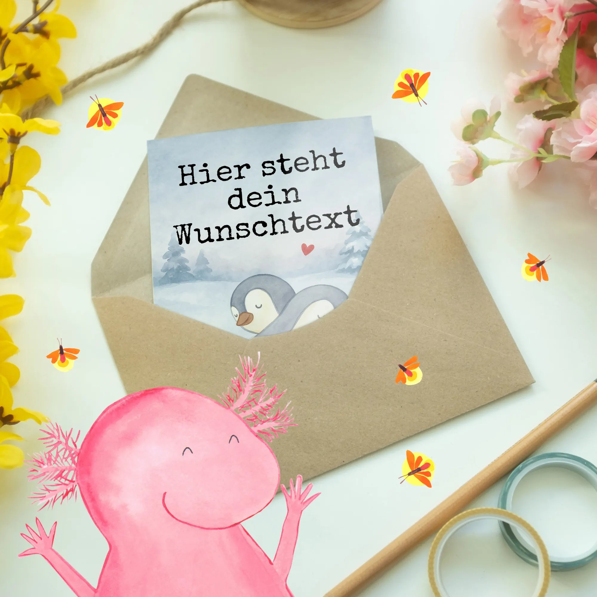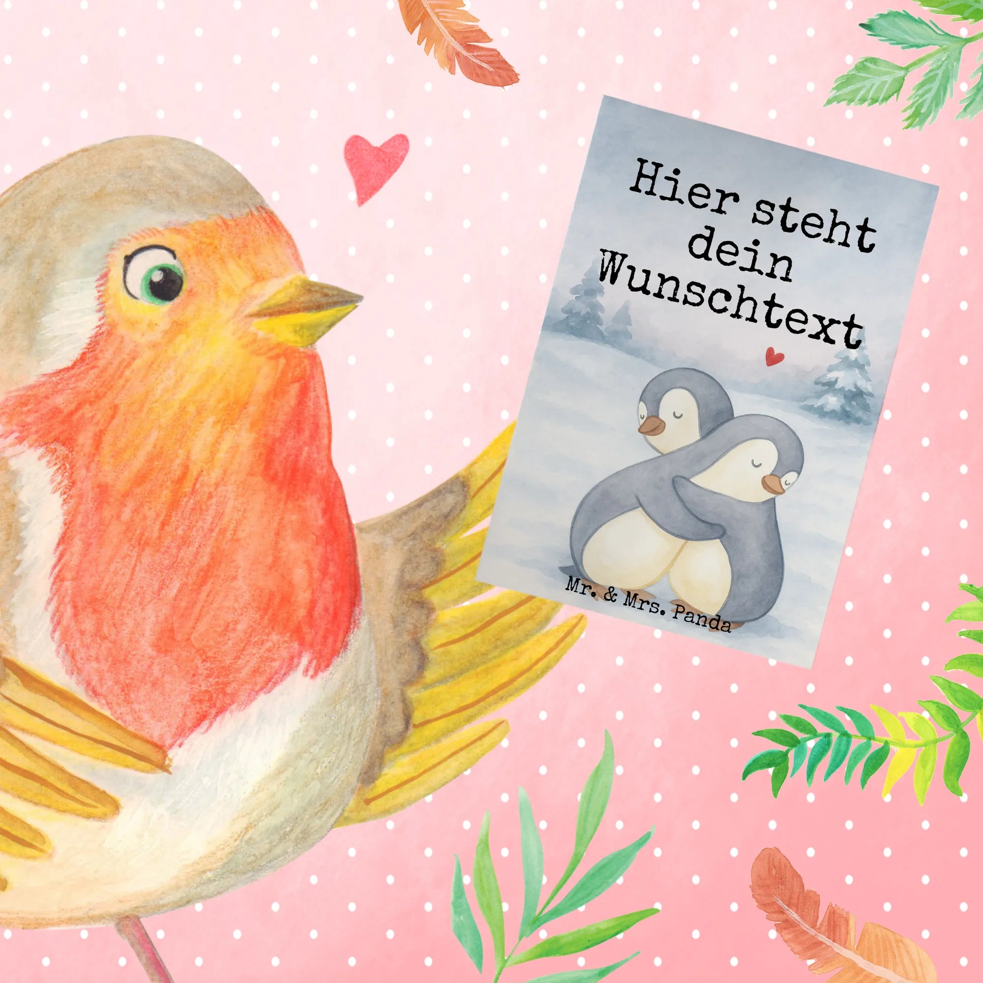 Personalised greetings card penguins Cuddle Design