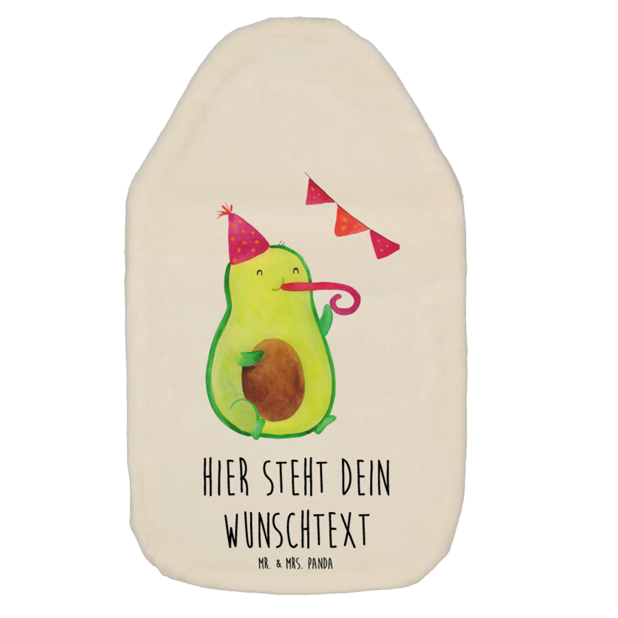 Personalised hot water bottle avocado party time