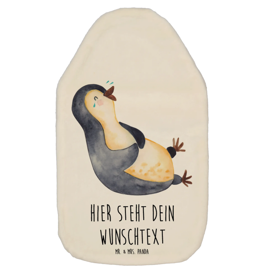 Personalised hot water bottle Penguin Laugh - White